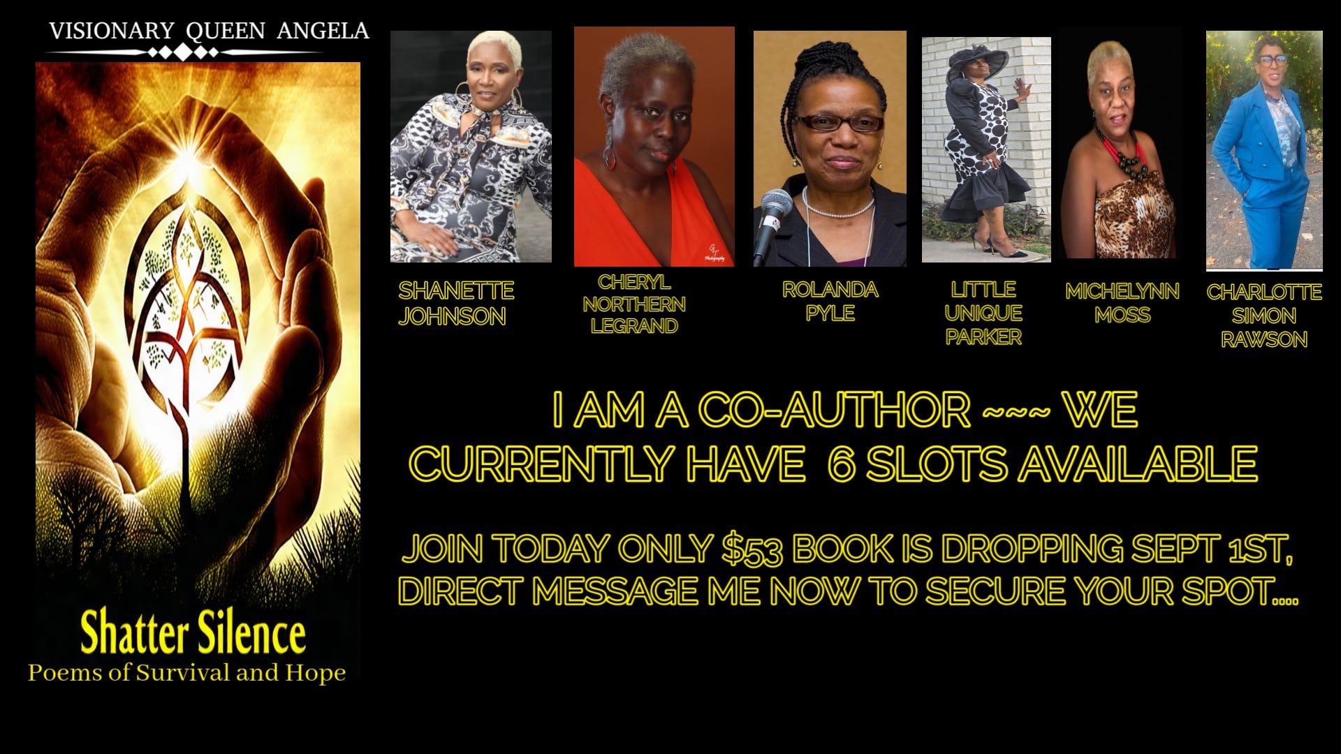 Encouragement for Authors: Level Up Your Brand!Don’t hide behind your words—let your creativity shine in every format! Visual promotion is not about perfection, but about connection. Every graphic, photo, or video you share helps potential readers see the human behind the pages, drawing them in and building lasting relationships.No experience? No problem! Start small, stay consistent, and keep learning. You have everything you need—your phone, free tools, and your story. The more you show up, the more you GROW.Take Action Today!Step out of your comfort zone and try a new visual promo: film a 60-second video, create a quote graphic, or share a behind-the-scenes photo. Tag your posts with #VisualPromoDay and watch your community—and confidence—flourish!Remember: Every great story deserves a spotlight. Let your visuals be the light that guides readers to your words.Aspiring Authors – Your words matter, and so does your presence! Shine, share, and stand out!EXAMPLE OF A BOOK PROMO VIDEO/AUDIO