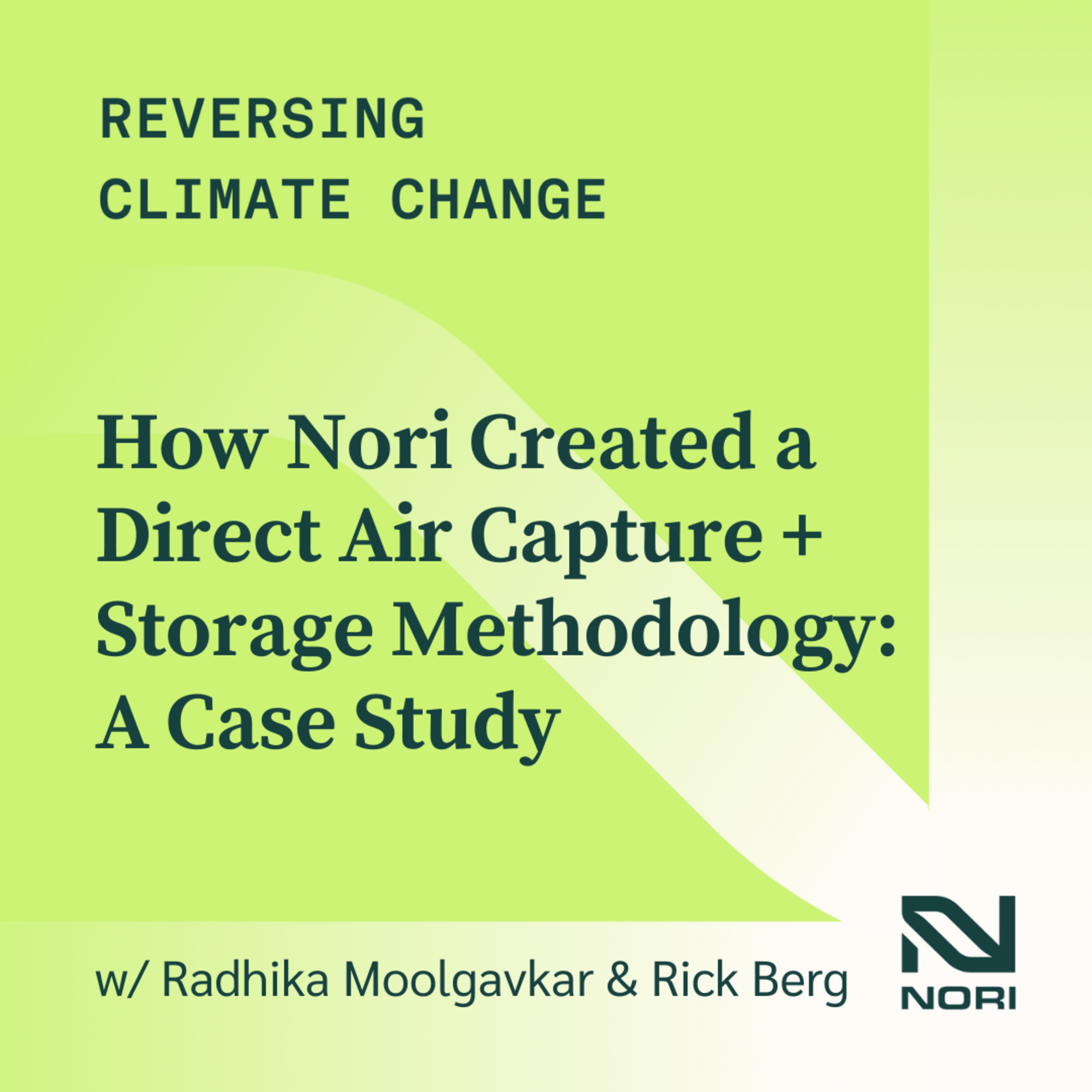 Thirdly, is the original body of the podcast where Ross speaks with Radhika Moolgavkar, formerly the VP of Supply & Methodology at Nori, and Rick Berg, formerly Nori’s Director of Methodology, about the development of Nori’s Direct Air Capture + Storage methodology.