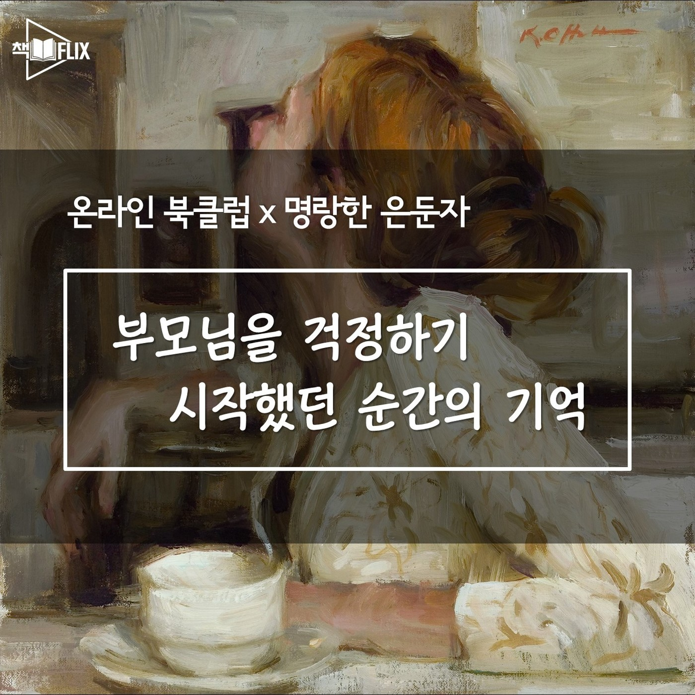 ‘명랑한 은둔자’의 저자 캐럴라인 냅은 '부모님 은혜의 시기' 즉, 부모에게 복종하지 않아도 될 만큼 나이가 들었지만 아직 부모를 걱정할 만큼은 나이가 들지 않은 시기가 끝났을 때 느끼는 막막함을 풀어놓습니다. 항상 부모님의 걱정 대상이 되던 입장에서, 이제 내가 부모님을 걱정하는 입장이 되었을 때 정말 많은 생각을 하게 되는데요. 그런 순간이 있다면 언제였나요?