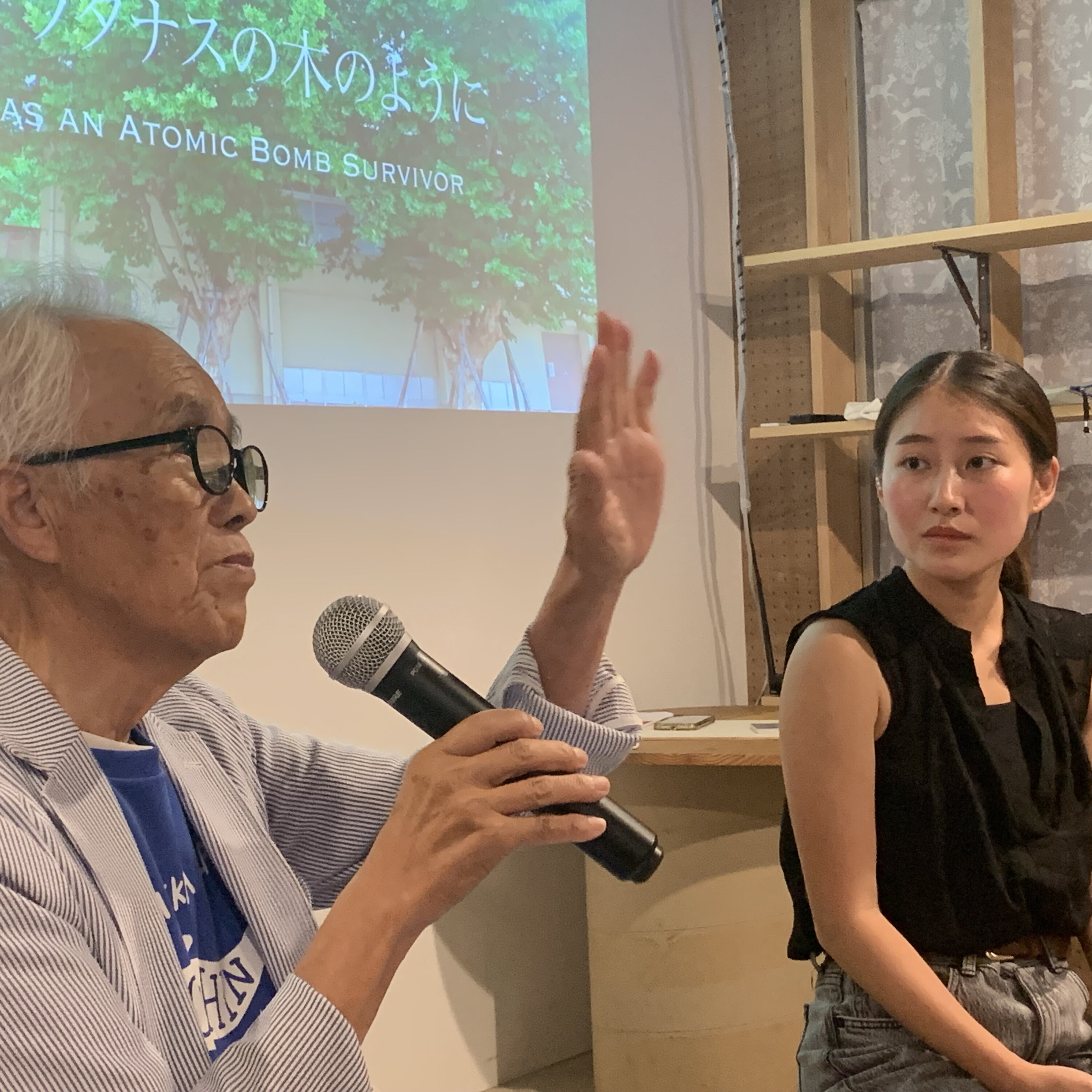 アメリカの高校に留学していた古賀野々華さんは、キノコ雲の校章への違和感を伝える動画をつくりました。被爆者の中には、古賀さんに突き動かされて証言活動をスタートした人もいます。交流を深め、ドキュメンタリー映像「She became a poet」や「あのプラタナスの木のように」をつくりました。