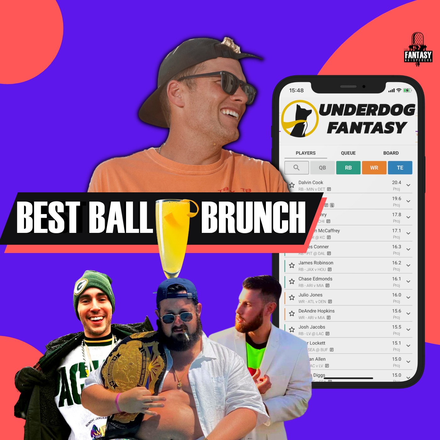 Welcome to Best Ball Brunch, we are The Fantasy Whisperers, the best kept secret in fantasy football where we keep that week 1 feeling going all year long. This is the very first episode of BEST BALL BRUNCH and we will be doing a Best Ball Draft on Underdog! Best Ball on Underdog is the best way to play fantasy football: You draft and set your mind at ease. No waivers, no trades. Just set it and forget it! You can play on Underdog as well and try to win money with us by downloading the app or going to UnderdogFantasy.com and using the Promo Code TFW where they will match your deposit up to $100!