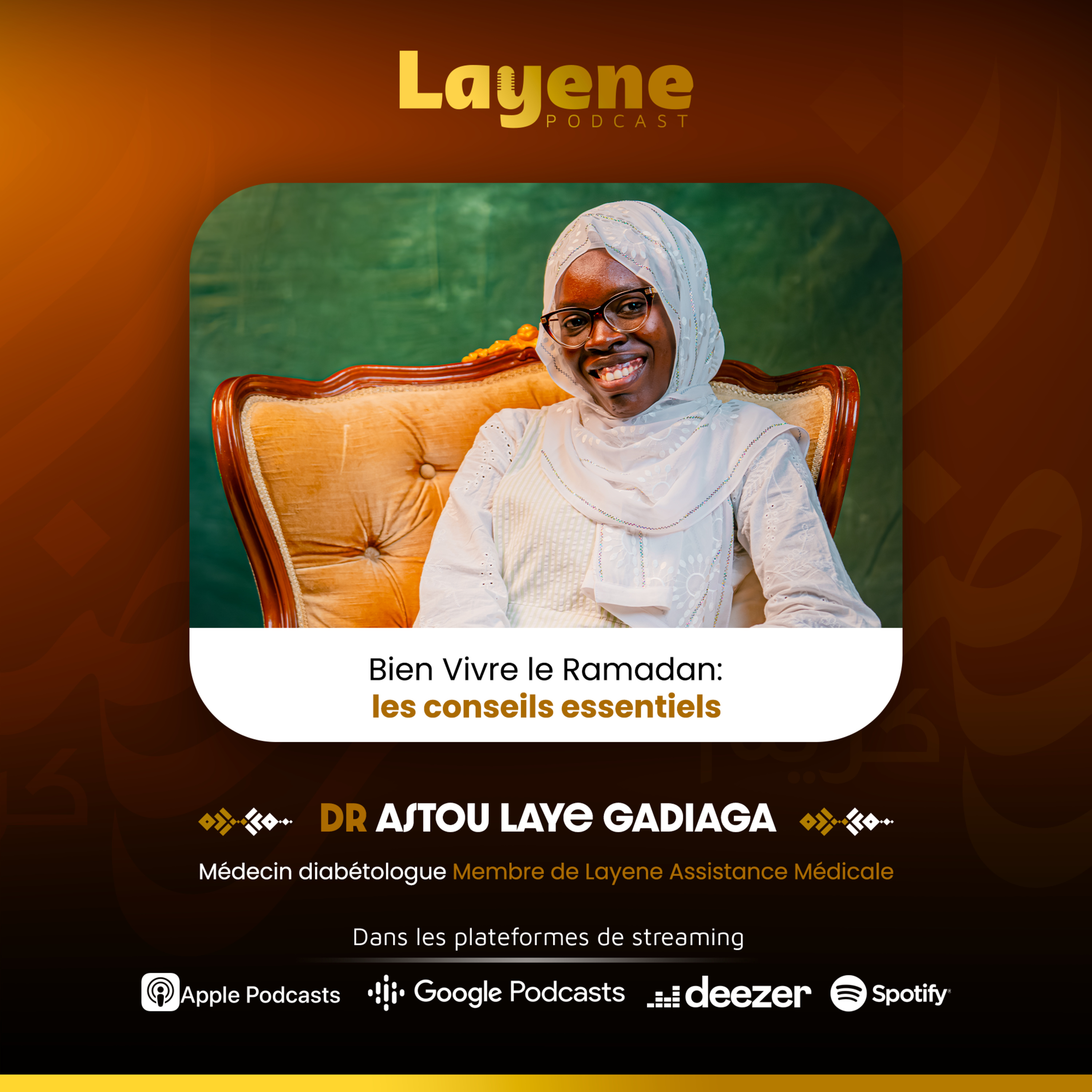 Dans cet épisode, la Dr Astou Lahi Gadiaga, diabétologue et membre de Layene Assistance Médical, partage des conseils pratiques pour vivre le Ramadan en toute sérénité, notamment pour les personnes vivant avec le diabète et les maladies chroniques.