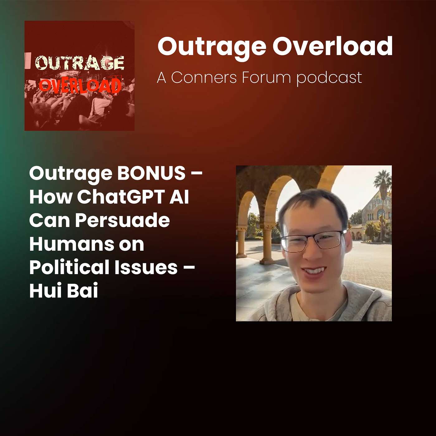 In this BONUS episode, we speak with researcher (Max) Hui Bai of the Stanford Impact Labs. about his recent recent study looking into the effectiveness of ChatGPT AI at influencing humans’ political attitudes.
