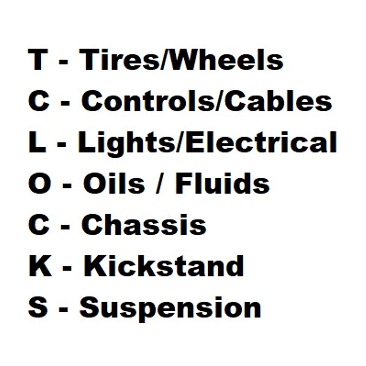 - Check brake / clutch hoses for cracks, leaks, bulges and chaffed areas