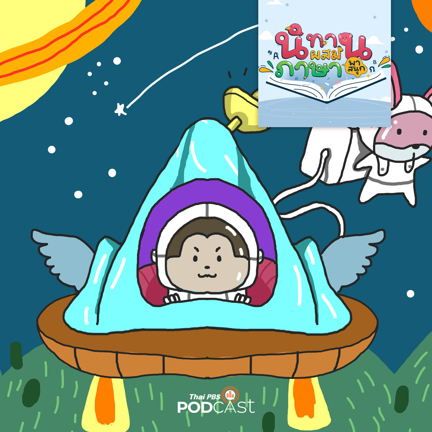ในค่ำคืนอันแสนธรรมดา ที่ทุกคนต่างพากันหลับไหล เจ้ากระต่ายและเจ้าลิงจ๋อก็เตรียมตัวเข้านอนตามปกติ แต่คืนนี้เจ้ากระต่ายและเจ้าลิงจ๋อต่างฝันในเรื่องเดียวกันว่าได้ขึ้นยานอวกาศท่องเที่ยวไปยังที่ต่าง ๆ แล้วยานอวกาศก็ได้ตกลงในป่าดงดิบของดาวดวงหนึ่ง ทั้งสองใช้เวลาหลายวันในการสำรวจดาวดวงนั้น จนพบว่ามีสัตว์ประหลาดอาศัยอยู่และกำลังมุ่งหน้าเข้ามาทำร้าย ทั้งสองจึงรีบวิ่งหนี เจ้ากระต่ายและเจ้าลิงจ๋อจะวิ่งหนีสัตว์ประหลาดได้ทันหรือไม่ ติดตามฟังพร้อมเรียนรู้ศัพท์ภาษาอังกฤษไปด้วยกันได้ที่ ThaiPBS Podcast