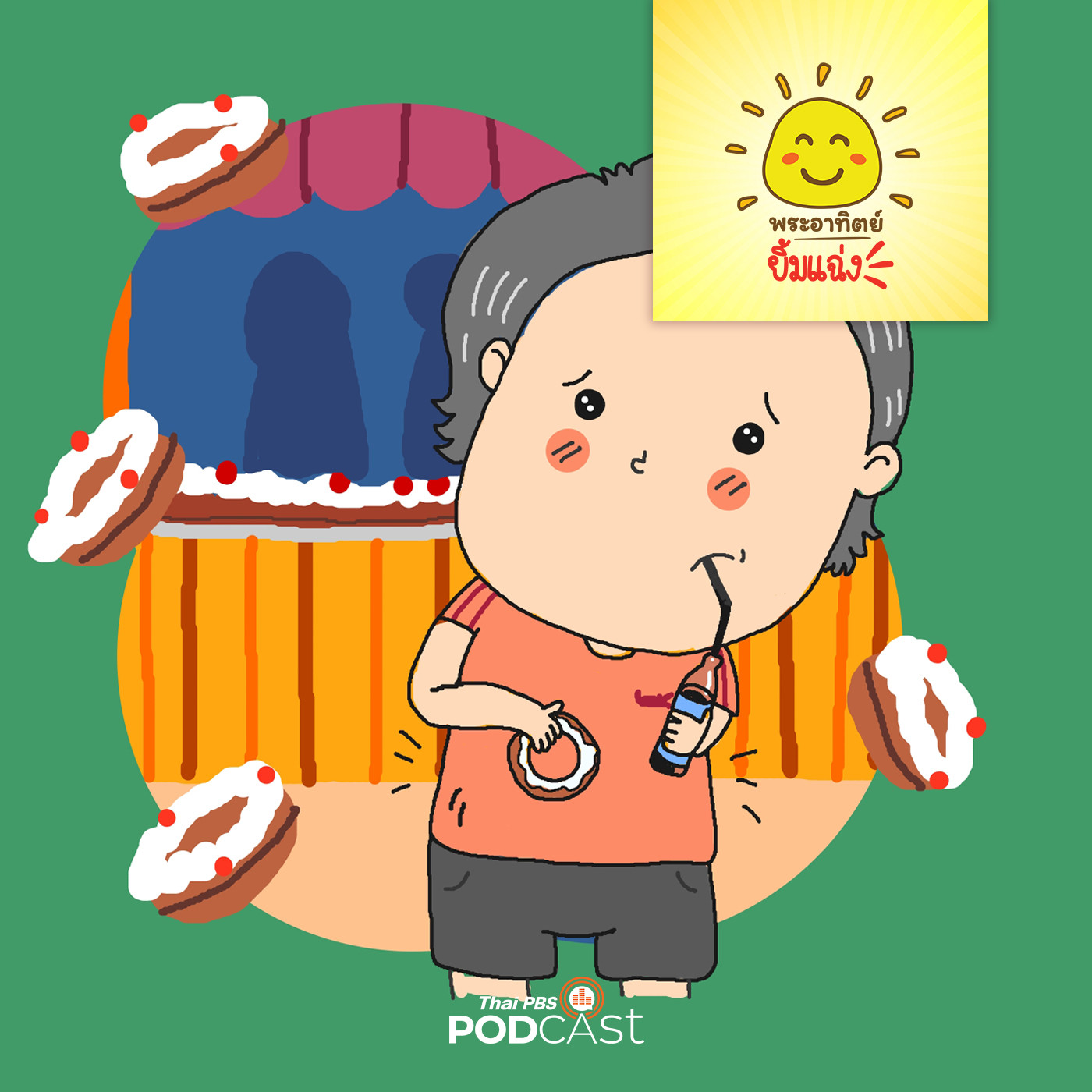 วันนี้มีการจัดตลาดที่นัดโรงเรียนในงานนอกจาจะมีของที่นักเรียนนำมาขายในราคาเป็นกันเองแล้วก็ยังมีซุ้มขนมมาแจกฟรีอีกด้วย พีนัทมาเดินเที่ยวงานและวนกินขนมที่ซุ้มนี้หลายรอบจนจุกแถมยังแอบไปดื่มน้ำอัดลมอีกหลายแก้ว “ปกติแม่สั่งห้ามไม่ให้กินทั้งขนมกับน้ำอัดลมแบบนี้ วันนี้ขอจัดหลายแก้วไปเลยดีกว่า” พีนัทยิ้มอย่างมีความสุข เมื่อถึงเวลาอาหารกลางวันเขากินข้าวไม่ลงเพราะอิ่มขนมและน้ำอัดลมเสียแล้ว แต่เมื่อกลับถึงบ้านจะเกิดอะไรขึ้น ติดตามได้ในรายการพระอาทิตย์ยิ้มแฉ่ง