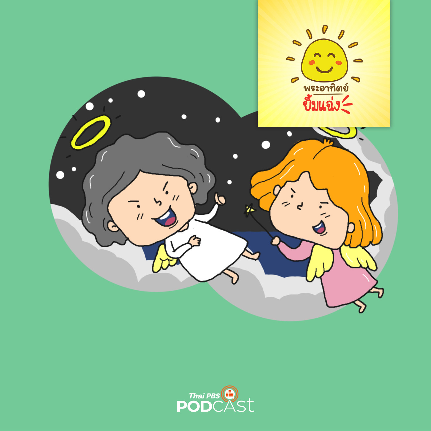 ณ โรงเรียนเวทย์มนต์ โรงเรียนฝึกหัดการเป็นนางฟ้าและเทวดาเพื่อให้เป็นนางฟ้าและเทวดาที่สมบูรณ์ ในวันสำเร็จการศึกษานางฟ้าและเทวดาตัวน้อยจะได้รับไม้วิเศษประจำตัว และพรวิเศษจากเทวดาครูใหญ่ว่า หากนางฟ้าและเทวดาท่องคาถาและโบกไม้วิเศษครั้งใดก็จะทำให้ดาวทุกดวงส่องแสงระยิบระยับทุกครั้ง หลังจากนั้นเหล่าเทวดาและนางฟ้าก็โบกไม้วิเศษและพูดพร้อมกันว่า โอม...เพี้ยง ขอให้ดาวทุกดวงส่องแสงระยิบระยับด้วยเถิด เพี้ยง นางฟ้าและเทวดาจะทำให้ดาวส่องแสงได้หรือไม่ติดตามได้ในรายการพระอาทิตย์ยิ้มแฉ่ง
