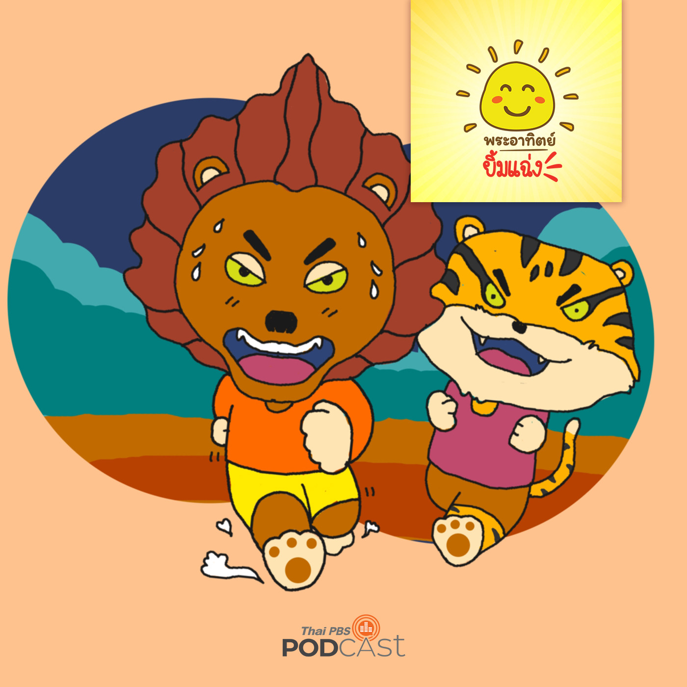 ณ ป่าใหญ่ที่มีแม่น้ำไหลผ่านแบ่งเขตกลางป่าเป็นสองฝั่งทำให้สัตว์ของทั้งสองฝั่งมีการแข่งขันและแย่งชิงเพื่อให้ฝั่งของตนได้รับชัยชนะและครอบครองแม่น้ำทั้งสาย โดยป่าฝั่งซ้ายมีสิงโตที่ร่างกายแข็งแรงและเป็นที่เกรงกลัวของสัตว์ในป่าเป็นหัวหน้า ส่วนฝั่งขวามีเสือตัวใหญ่ที่มีพวกจำนวนมากเป็นหัวหน้า ทั้งสองท้าประลองความสามารถโดยให้หนูตัวเล็กเป็นกรรมการตัดสิน โดยเลือกให้ทั้งสองวิ่งแข่งไปที่บนยอดเขา ใครไปถึงจุดหมายก่อนชนะ เมื่อสัญญาณปล่อยตัวดังขึ้นทั่งคู่วิ่งแข่งกันแบบชนิดไม่มีใครยอมใคร วิ่งมาได้สักระยะราชสีห์และเสือเริ่มมีอาหารเหนื่อยหอบ เมื่อมาถึงทางลาดชัน อีกนิดเดียวก็จะถึงยอดเขารำไรข้างหน้า แต่ทั้งคู่เริ่มตาพร่าคล้ายจะเป็นลมเสือละราชสีห์ใครจะเป็นผู้ชนะติดตามได้ในรายการพระอาทิตย์ยิ้มแฉ่ง