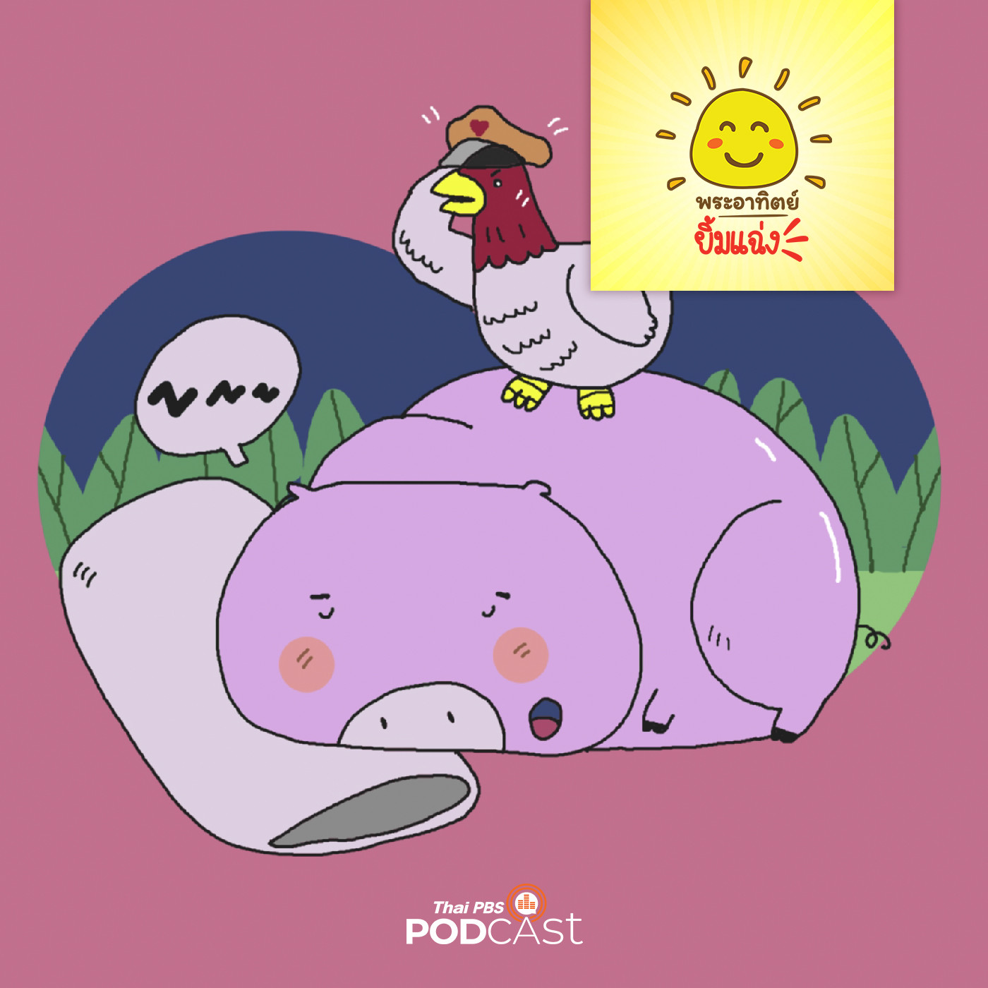 ณ ฟาร์มเลี้ยงสัตว์แห่งหนึ่ง มีอ้วนทำหน้าที่เฝ้าดูแลความเรียบร้อย แต่หมูอ้วนเป็นหมูที่มีนิสัยขี้โมโห หงุดหงิดง่าย โดยเฉพาะช่วงเวลากลางวัน เป็นเวลาพักผ่อนของมัน หากถูกใครรบกวนมันจะโมโหมาก อยู่มาวันหนึ่งเจ้าของฟาร์มได้นำสมาชิกใหม่เข้ามาอยู่ด้วย นั่นก็คือ มีไก่โต้ง มันชอบมานอนอยู่ข้าง ๆ หมูอ้วน และไม่รู้เลยว่าหมูอ้วนขี้โมโหและชอบโวยวายมาก ไก่โต้งมักส่งเสียงขันดังลั่นเสมอ พอหมูอ้วนต่อว่าไก่โต้งก็ยังเถียงทำให้หมูอ้วนโมโหมากที่ไก่โต้งไม่เกรงกลัวมันเลย ความวุ่นวายโกลาหลจะเกิดขึ้นมากน้อยแค่ไหนติดตามได้ในรายการพระอาทิตย์ยิ้มแฉ่ง