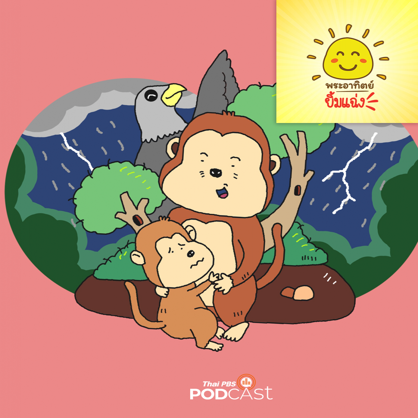 ณ กลางป่าใหญ่ ลิงสองพี่น้องกำลังนั่งกอดกันกลม เพราะความกลัวหลังจากพลัดหลงกับพ่อและแม่ ลิงจ๋อพี่ชายต้องคอยกอดปลอบใจลิงน้อย ทั้งที่ตัวเองก็กลัวเหมือนกัน แต่ก็จำเป็นต้องเข้มแข็งเพราะไม่เช่นนั้นจะทำให้ลิงน้อยกลัวมากขึ้น ลิงจ๋ออุ้มลิงน้อยไว้ในออมกอดเพื่อปลอบใจน้อง และพาลิงน้อยไปที่ต้นไม้ใหญ่ตามที่ตั้งใจไว้ หลังจากที่หากิ่งไม้ที่แข็งแรงพอหลบฝนและปลอดภัยได้มันจึงไปหาอาหารมาให้น้อง ลิงจ๋อมองลิงน้อยอย่างสงสารและวิ่งเข้าป่าไปได้กล้วยมาเป็นอาหาร ลิงจ๋อและลิงน้อยก็ต้องนั่งกอดกันตลอดทั้งคืนเพราะพ่อกับแม่ยังตามหามันสองตัวไม่เจอ ทั้งสองจะทำอย่างไรต่อไปติดตามได้ในรายการพระอาทิตย์ยิ้มแฉ่ง
