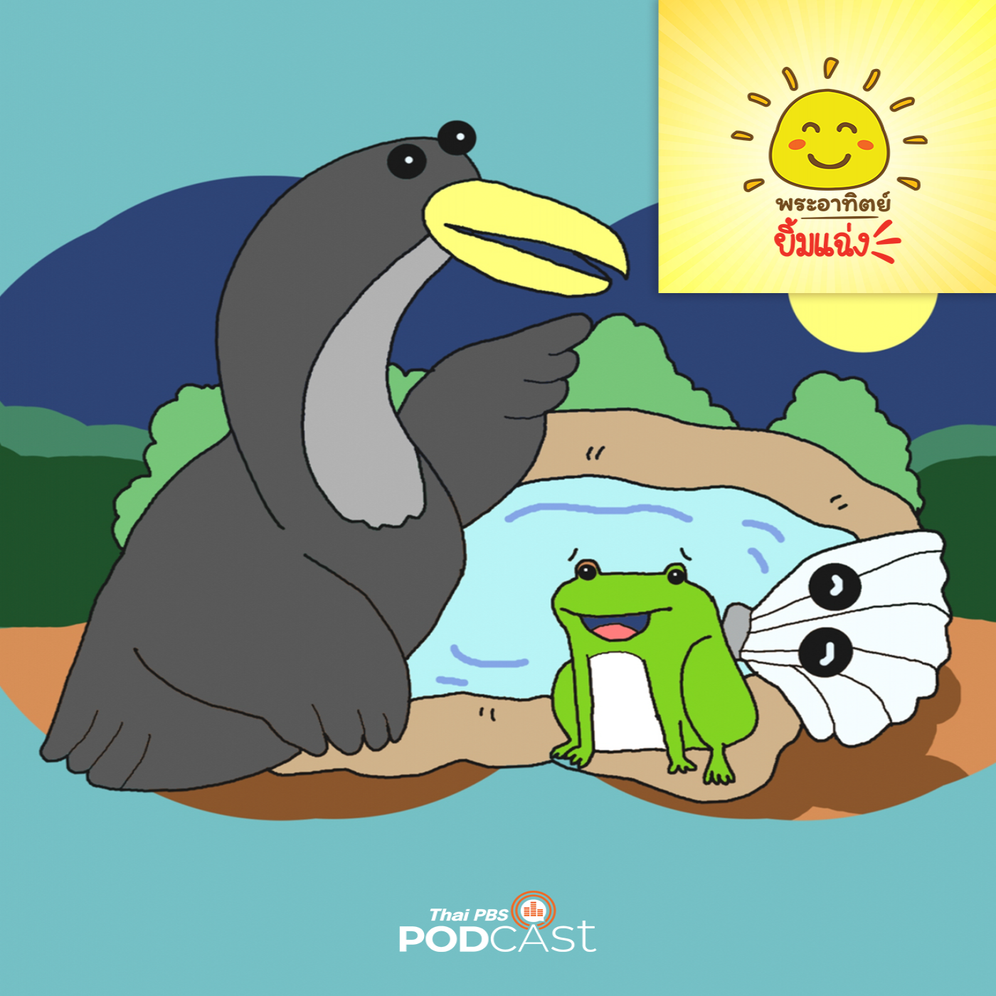 ณ หนองน้ำเล็ก ๆ แห่งหนึ่งมีสิ่งมีชีวิตอาศัยอยู่มากมาย ไม่ว่าจะเป็น หอย ฝูงปลาฝูงเล็ก ๆ ปลาตัวโต ๆ แมลง นก และพืชน้ำนานาชนิด รวมถึงแม่กบก็อาศัยอยู่ที่นี่เช่นกัน วันหนึ่งขณะที่แม่กบกำลังนั่งพักผ่อนอยู่ ก็ได้ยินเสียงโวยวายของนกกามาแต่ไกลว่า เจ้าข้าเอ๊ย เกิดเรื่องใหญ่แล้ว ทุกคนฟังทางนี้ ฉันได้ยินข่าวมาว่าจะเกิดโรคระบาดในป่าใกล้ ๆ หนองน้ำ และจะลามมาถึงหนองน้ำของเราด้วย แต่แม่กบไม่เชื่อจึงถามว่าไป เอาข่าวมาจากไหน เชื่อถือได้หรือเปล่า แม่กบไม่เคยได้ยินข่าวนี้เลย นกกาน้ำบอกกับแม่กบว่าสัตว์ในป่าลือกันให้แซ่ดรับรองเรื่องจริง ข่าวของนกกาเป็นเรื่องจริงหรือไม่และบรรดาสัตว์จะทำอย่างไรต่อไปติดตามได้ในรายการพระอาทิตย์ยิ้มแฉ่ง