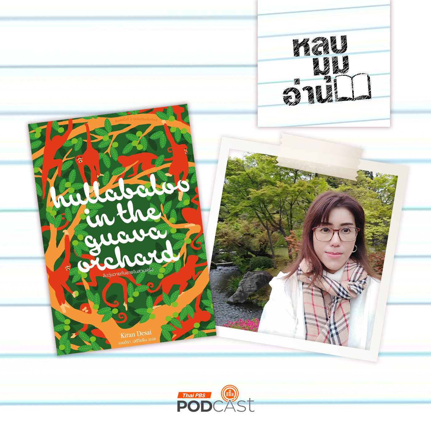เจนจิรา เสรีโยธิน ผู้แปล Hullabaloo in the Guava Orchard (ลิงวุ่นวายกับชายในสวนฝรั่ง) เขียนโดย Kiran Desai นักเขียนหญิงชาวอินเดีย นักเขียนนำเสนอความสนุกสนาน หรรษาของนวนิยายเล่มนี้ผ่านครอบครัวของสัมพัทธ์ตัวละครหลักของเรื่องและตัวละครอื่น ๆ สวนฝรั่ง ฝูงลิง และบริบทแวดล้อม ทำให้เราซึมซับเรื่องราวทางสังคมและวัฒนธรรมของอินเดียผ่านการเล่าเรื่องและเรื่องเล่าที่สร้างตัวละครแต่ละตัวให้มีเสน่ห์เฉพาะตัว ในขณะเดียวกันก็มีสิ่งให้ชวนขบคิด ท่ามกลางความเพลิดเพลินระหว่างอ่าน ฟังภาพแทนบางส่วนของสังคมอินเดียจากนวนิยายเรื่อง ลิงวุ่นวายกับชายในสวนฝรั่ง กับ หลบมุมอ่าน และผู้แปลจะมาร่วมพูดคุยในอีพีนี้กัน