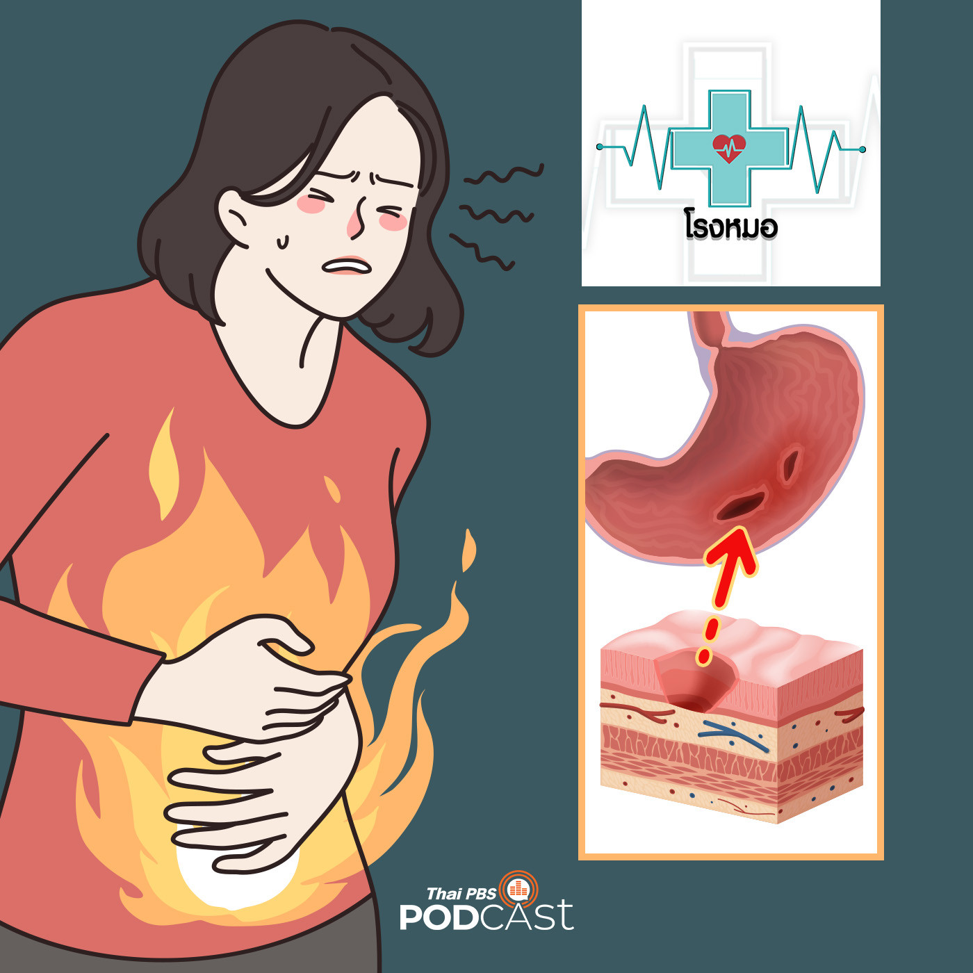 สาเหตุส่วนใหญ่เกิดจากกระเพาะหลั่งกรดมากเกินไป ร่วมกับความต้านทานกรดของเยื่อบุกระเพาะอาหารและลำไส้ลดลง ทำให้เกิดแผลและอักเสบขึ้น ไม่เพียงเท่านั้นยังมีสาเหตุอื่นอีกเช่น ผู้ป่วยไปติดเชื้อ เฮลิโคแบคเตอร์ ไพโลไร (Helicobactor Pylori) หรือ เฮซ. ไพโลไร (H. pylori) เป็นแบคทีเรียที่พบได้ในเขตร้อน ติดต่อผ่านการรับประทานอาหารหรือน้ำที่ปนเปื้อนเข้าไป รวมถึงคนที่ชอบสูบบุหรี่, เครียด, ซึมเศร้า, นอนไม่หลับ ฯลฯ การปวดแต่ละครั้งจะนานประมาณ 15 - 30 นาที และจะเป็น ๆ หาย ๆ ที่สำคัญ โรคนี้หากไม่ได้รับการรักษาหรือดูแลไม่ดีเสี่ยงต่อภาวะแทรกซ้อนที่เป็นอันตราถึงชีวิตได้