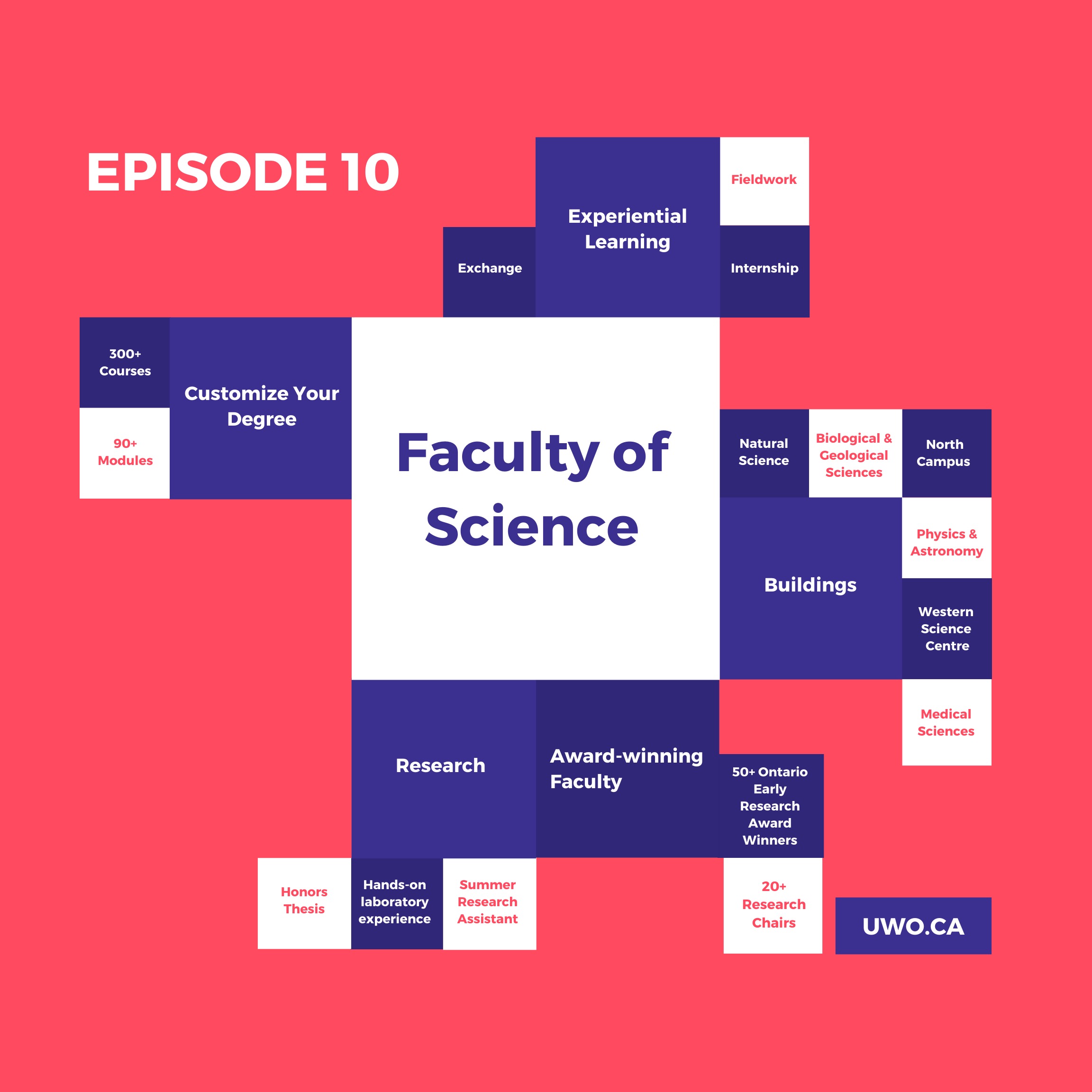 Welcome to the Faculty of Science with Youmi, a recent graduate from the faculty! This episode follows the dark orange route on the map. Youmi will highlight some of the unique programs offered at Western, and the many opportunities for research during your undergraduate degree. You will also learn about our internship program, international exchanges, extracurriculars, and more!