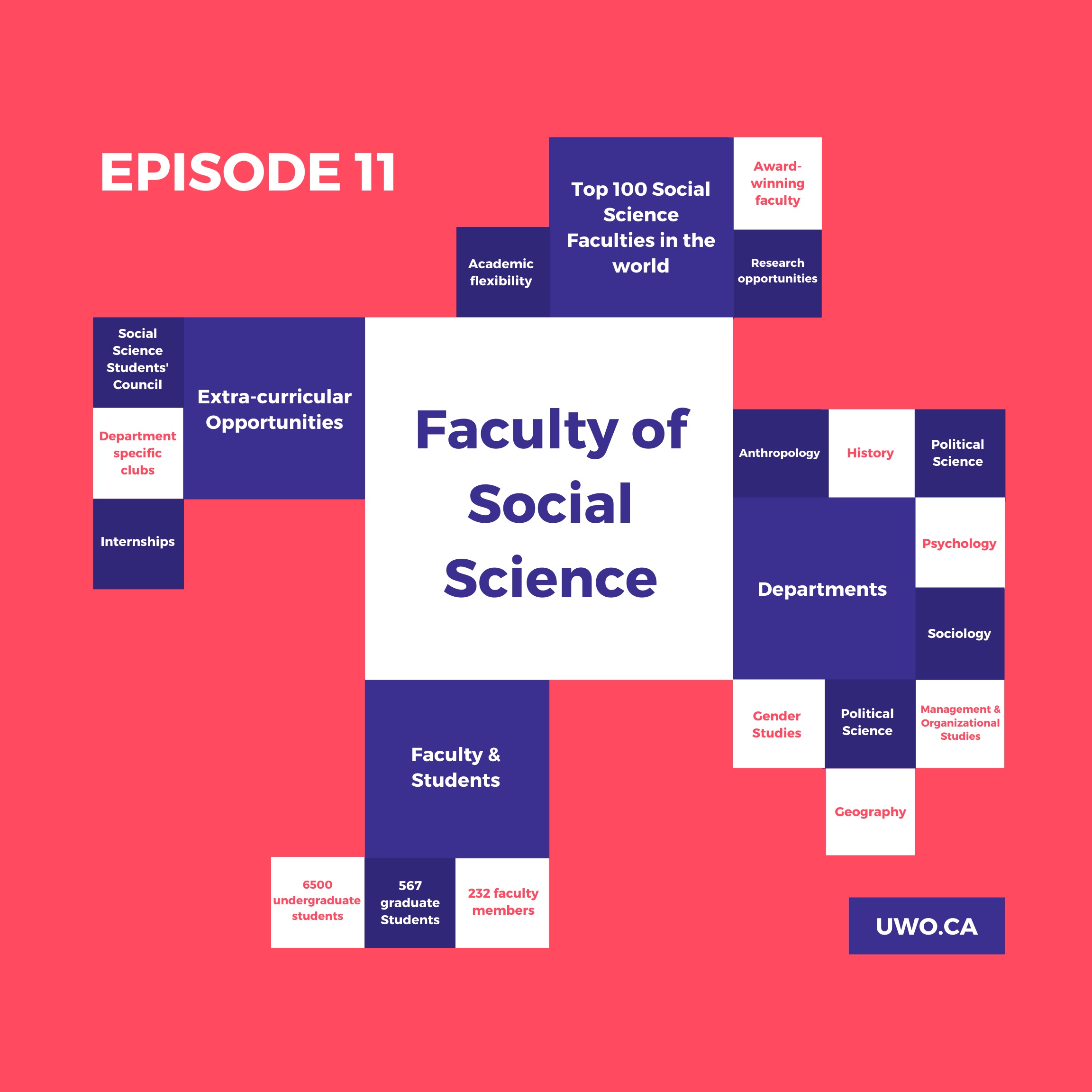Welcome to the Faculty of Social Science with Maddie, a current student in the faculty! This tour visits a single building, which is marked by the turquoise icon on our map. Maddie will include information on the faculty’s departments and innovative programs, professors, and extracurriculars. You will also learn about how you can diversify your degree through internships, community-engaged learning, and more!