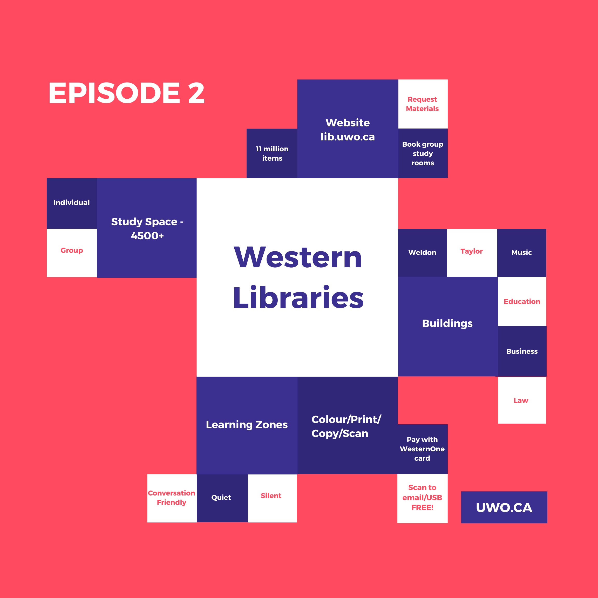 **RECOMMENDED** Welcome to Western’s Libraries with Youmi! This episode follows the black route on our map. Our nine libraries not only act as productive study spaces, but also provide students with access to diverse services and amenities. We bet that you will learn about many useful ones during this tour! You will also learn about our library website, lib.uwo.ca.