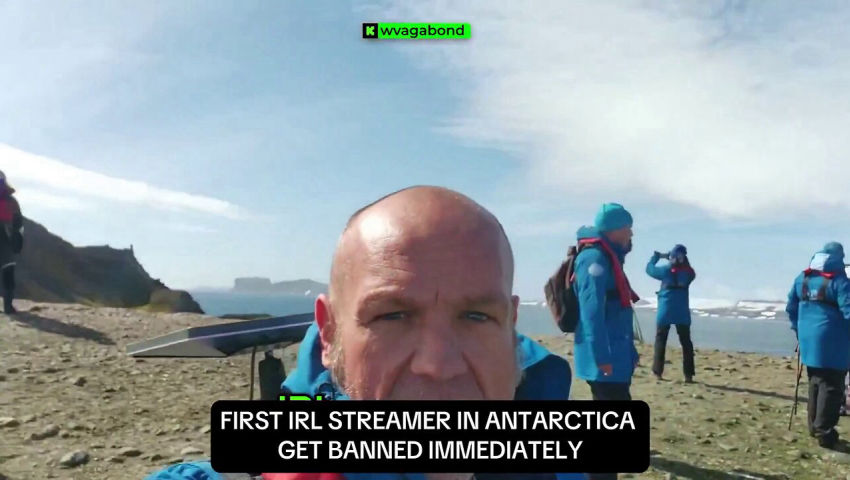 Online streamer actually makes his way to the frozen continent, starts filming and is met by a huge team of security”