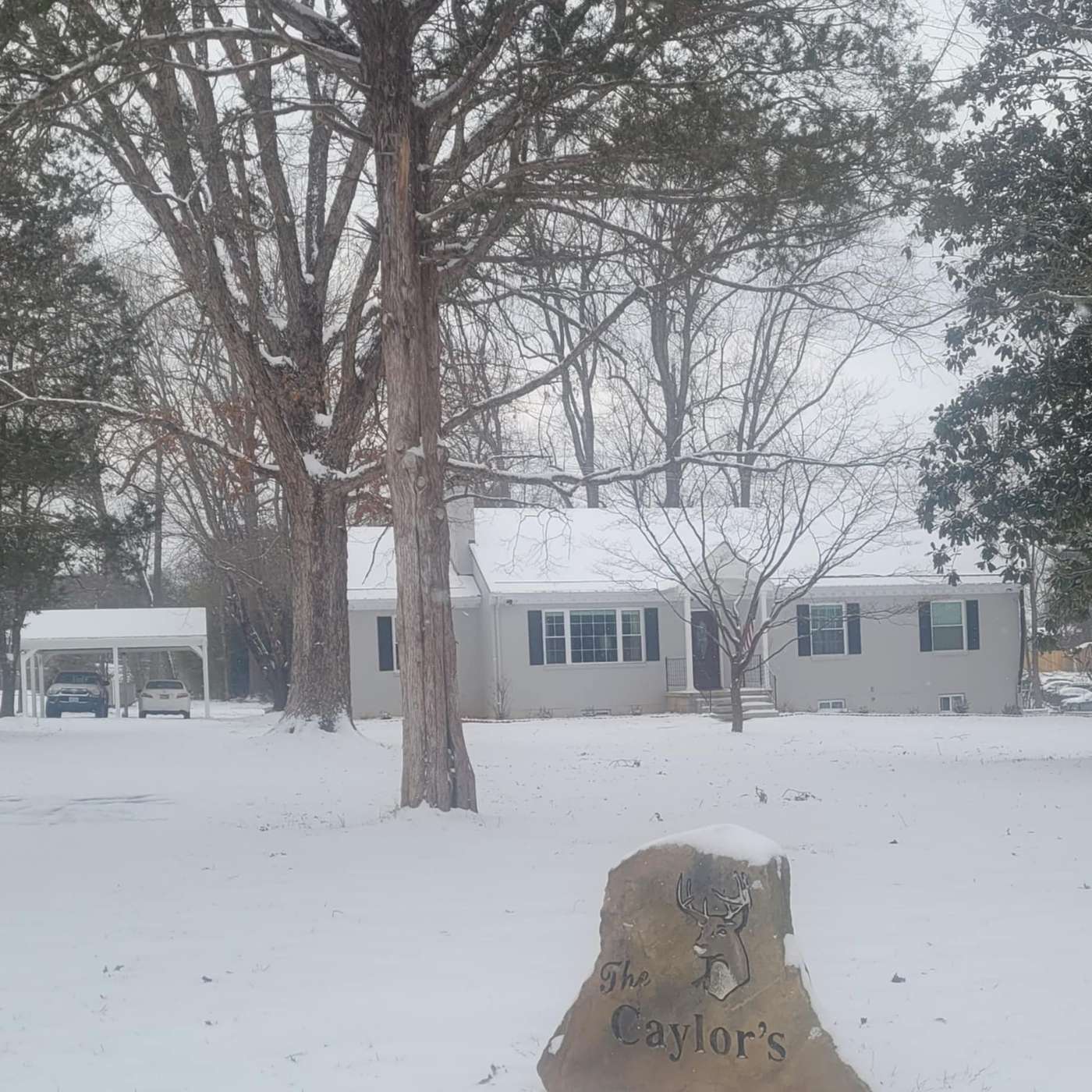 The neighborhood kids are out of school today. They have sleds out and some are building snowmen. Others are engaging in snowball fights and playing hide and seek. Some people have their Christmas lights on, which gives the white snow color and character.
