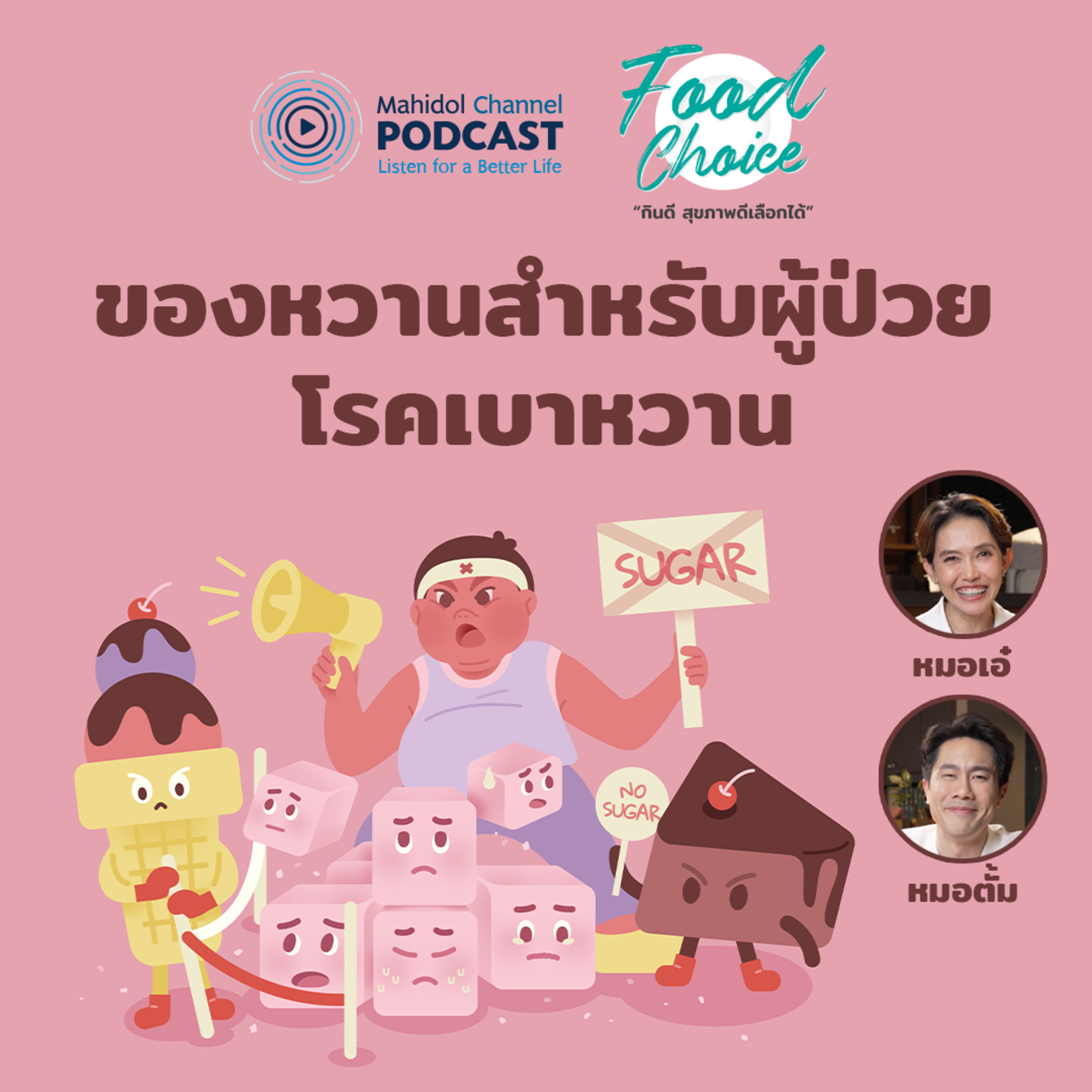 เมนูหวาน ไม่ว่าจะเป็น ขนม เบเกอรี หรือเครื่องดื่ม ล้วนเป็นเมนูฮิตของหลาย ๆ คน แต่สำหรับผู้ป่วยโรคเบาหวาน กลับเป็นเมนูต้องห้าม แล้วจะทำอย่างไรให้ผู้ป่วยโรคเบาหวาน ได้ลิ้มรสอร่อยจากของหวานได้บ้าง ในวันนี้ รายการ Food Choice กับหมอเอ๋ ผศ.พญ.ดรุณีวัลย์ วโรดมวิจิตร จากคณะแพทยศาสตร์โรงพยาบาลรามาธิบดี ม.มหิดล และหมอตั้ม นพ.ดิษกุล ประสิทธิ์เรืองสุข ศิษย์เก่าคณะแพทยศาสตร์ศิริราชพยาบาล ม.มหิดล จะมาแจกสูตร 5 ของหวาน สำหรับผู้ป่วยโรคเบาหวาน รวมไปถึงการปรับเปลี่ยนพฤติกรรมการกินอาหารเพื่อรักษาระดับน้ำตาลในเลือดให้เหมาะสม ลดความอันตรายจากโรคเบาหวาน __________________ #ความรู้ทำให้ทุกอย่างเป็นไปได้#FoodChoices#MahidolChannelPODCAST #MahidolChannel#คณะแพทยศาสตร์โรงพยาบาลรามาธิบดีมหิดล #mura –––––––––––––––––––– 📌ช่องทางการฟัง Podcast Apple Podcasts: https://apple.co/2Oxp5FN Spotify: https://spoti.fi/31v1Rmx Anchor: https://anchor.fm/mahidolchannel –––––––––––––––––––– YouTube: http://www.youtube.com/mahidolchannel Facebook: http://www.facebook.com/mahidolchannel Mahidol University มหาวิทยาลัยมหิดล: https://www.mahidol.ac.th/th Website | https://channel.mahidol.ac.th/ คณะแพทยศาสตร์โรงพยาบาลรามาธิบดี ม.มหิดล | https://med.mahidol.ac.th