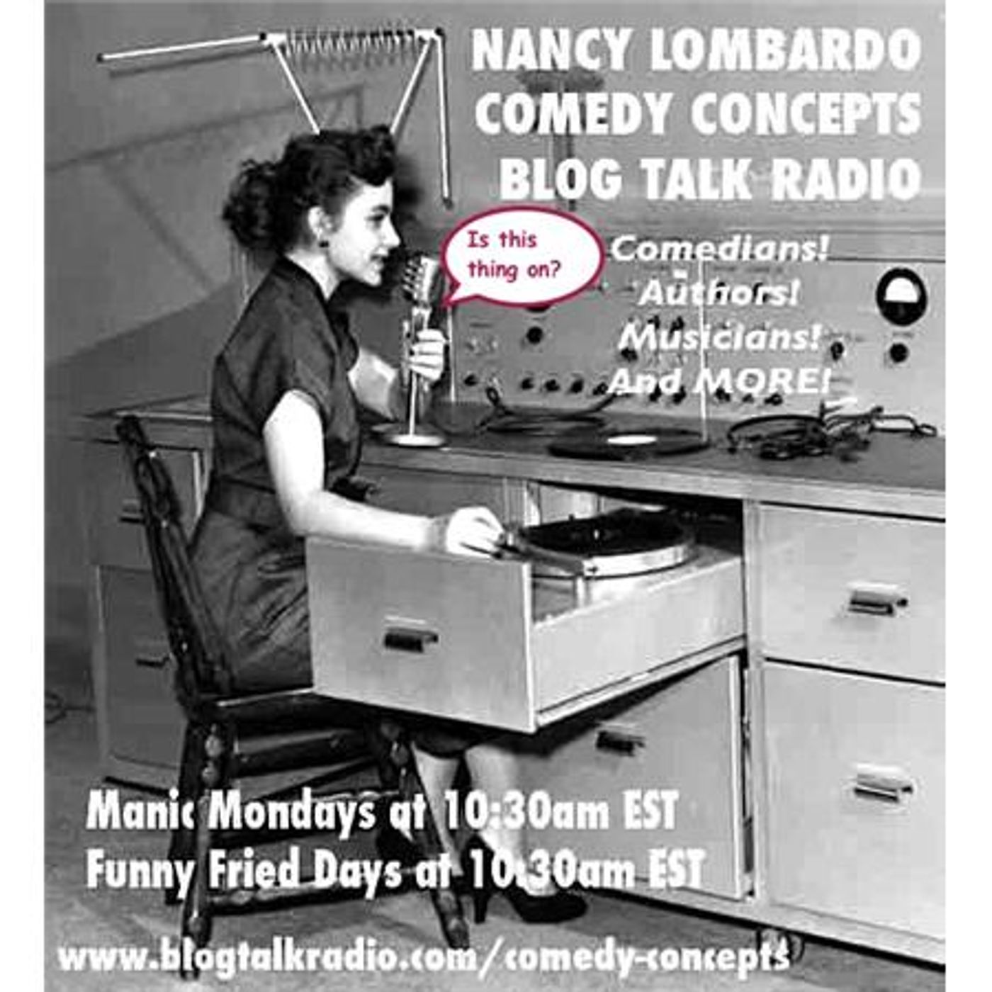 New York City based Comedian Nancy Lombardo host a cornucopia of terrific guests. Mixing it up with comedians, authors, musicians, professionals. Nancy Lombardo has performed her unique comedy from coast to coast. "COLOR ME CRAZY" MARY CHRISTMAS AND MOMEDY AVAILABLE ON CD BABY. Watch the NANCY LOMBARDO SHOW Fridays 7pm EST www.mnn.org or in NYC channel 83 RCN 56 TW 34 Fios. Follow Comedy Concepts on Blog Talk Radio. SUPPORT THE ARTS BY SUPPORTING THE ARTS...BUY STUFF! http://www.cdbaby.com/Artist/NancyLombardo bring it!
