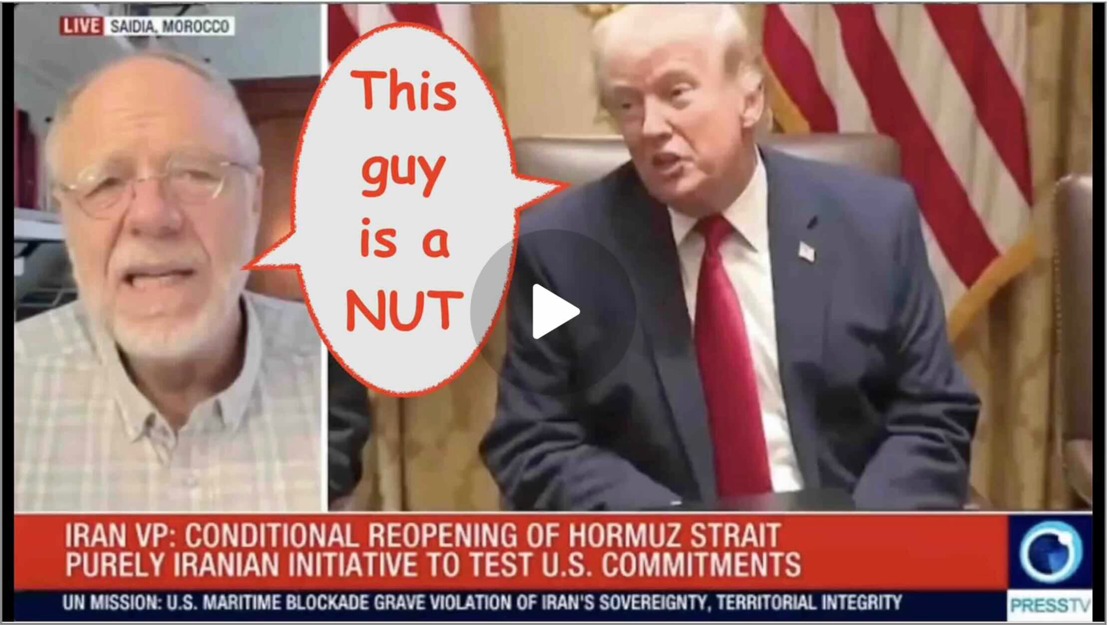 I did Press TV rolling coverage interviews last (Friday) night and again this (Saturday) morning. The topic, naturally, was the “Hormuzian confusion” generated by Trump’s out-of-control mouth. The above video begins with a brief Press-TV-chosen highlight reel from the Friday interview, followed by a complete archive of my portion of the interviews. Below is the complete transcript. -KB