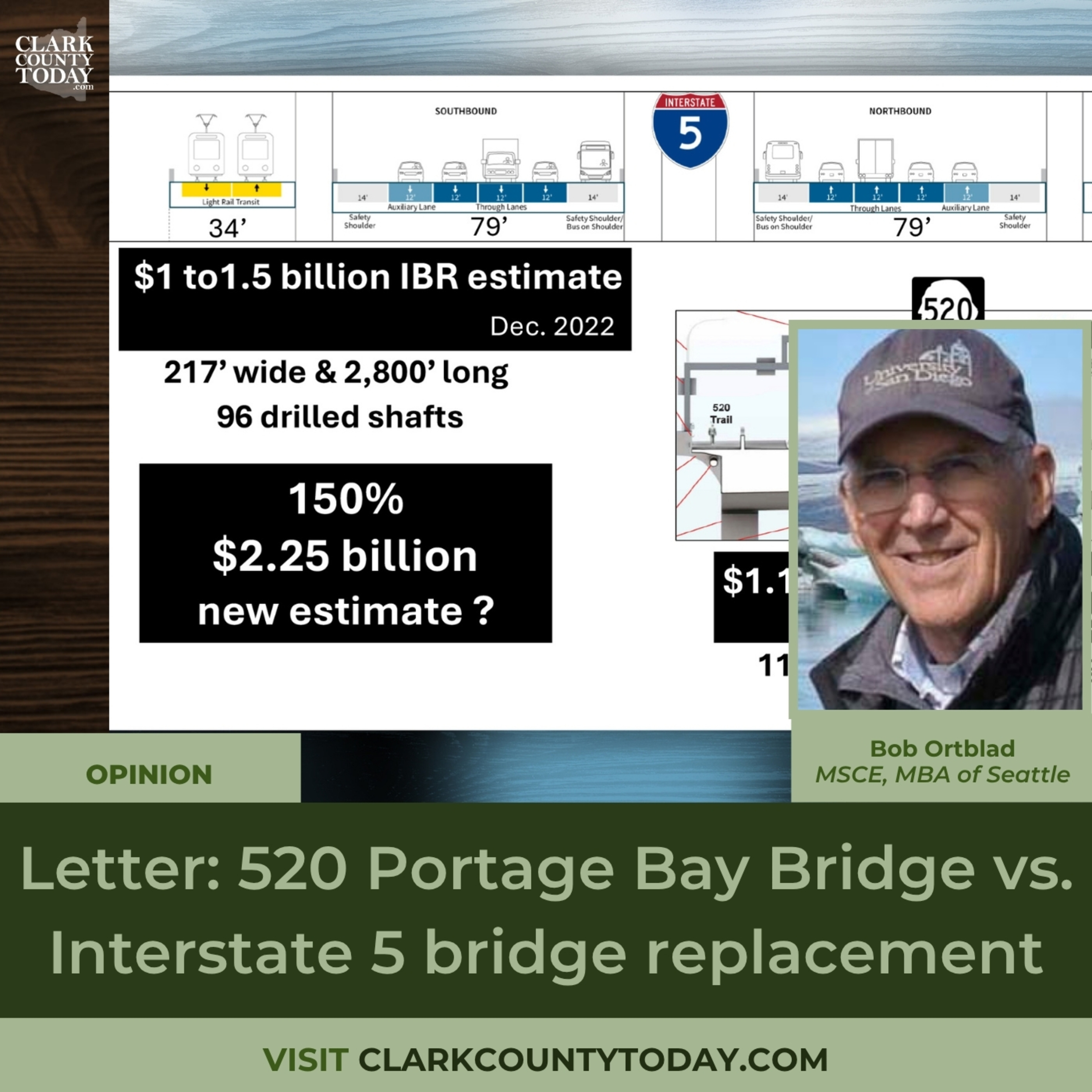 Bob Ortblad argues that the IBR program fraudulently dismissed a tunnel alternative and compares the 520 Portage Bay Bridge and the I-5 Bridge designs. https://www.clarkcountytoday.com/opinion/letter-520-portage-bay-bridge-vs-interstate-5-bridge-replacement/ #ClarkCounty #localnews #I5Bridge #immersedtunnel #bridgecomparison #SR520 #PortageBayBridge #VancouverWA #opinion #constructioncosts