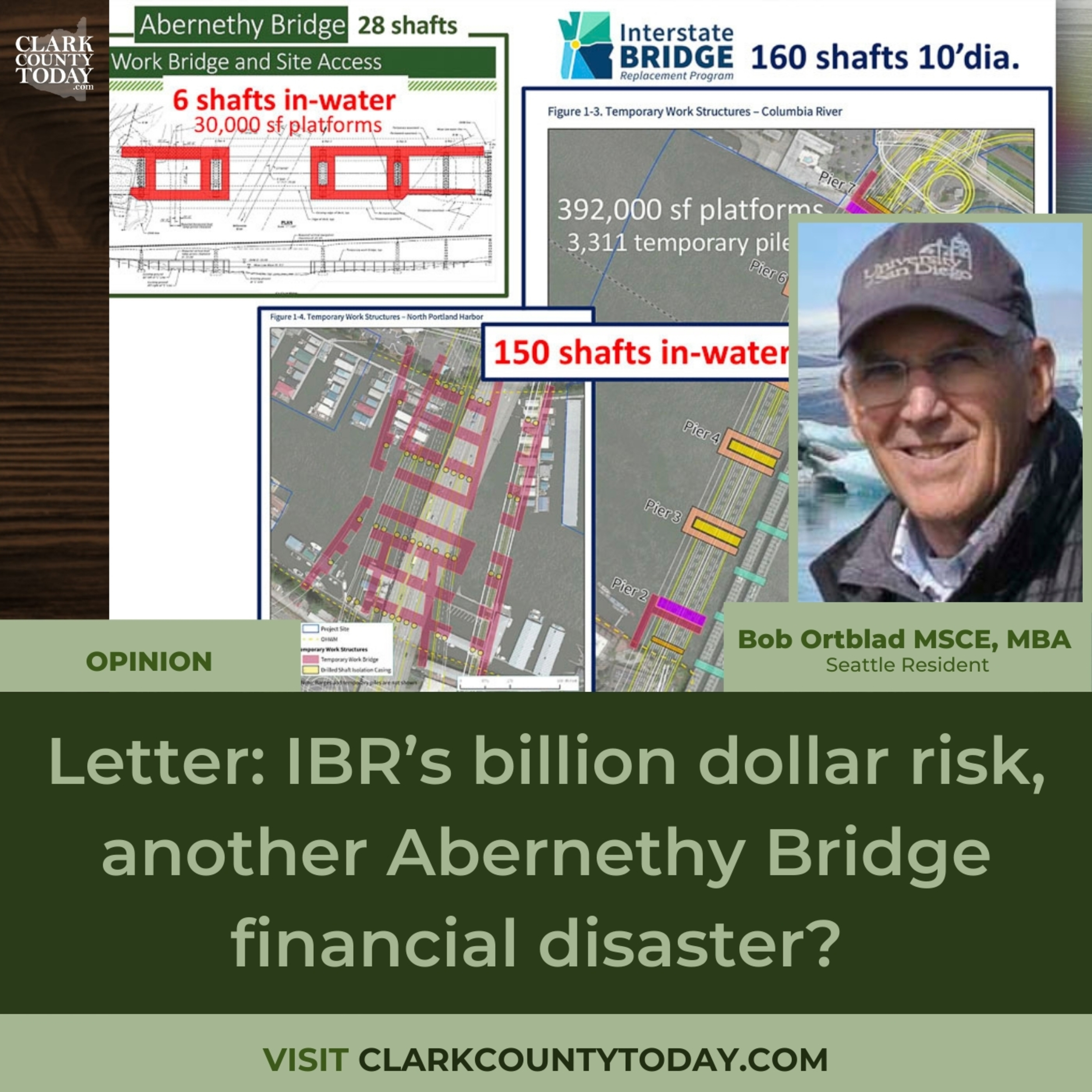 Could the Interstate Bridge Replacement (IBR) project be heading toward a financial disaster? Bob Ortblad raises concerns about hidden geotechnical risks and questionable cost estimates, arguing that the Columbia River bridge design may not be viable. He also suggests an alternative immersed tunnel that could be safer and more cost-effective. Read more at https://www.clarkcountytoday.com/opinion/letter-ibrs-billion-dollar-risk-another-abernethy-bridge-financial-disaster/ #InterstateBridgeReplacement #IBR #ColumbiaRiverBridge #BridgeConstruction #SeismicRisk #TransportationFunding #PublicInfrastructure #Vancouver #ClarkCountyWa #WashingtonState #LocalNews
