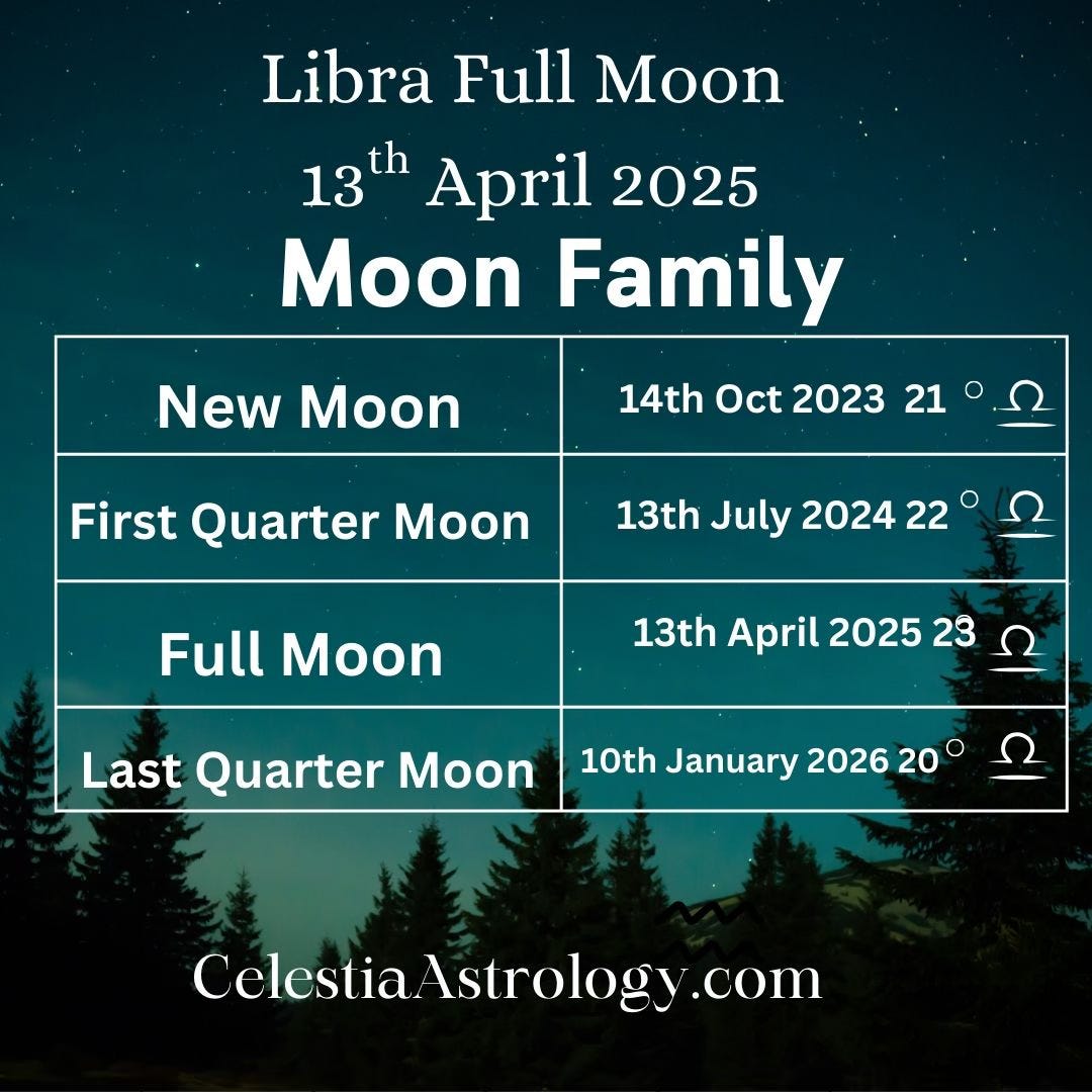 * Full Moon: April 13, 2025 – 23° Libra