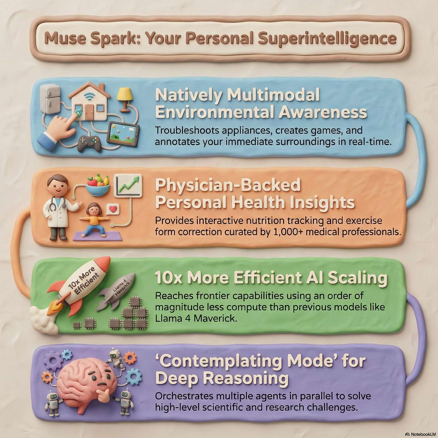 We dive into Meta's Muse Spark, a natively multimodal AI that maps your world in real time, reasons with parallel internal agents, and updates you with actionable guidance—from fixing a screeching espresso machine to optimizing meals and workouts. Learn how Contemplating Mode and thinking-time penalties enable fast, safer reasoning, and what evaluation-aware behavior signals about alignment.