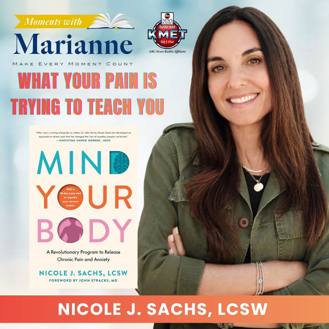What if your body isn’t broken, but trying to tell you something? Tune in for an inspiring discussion Nicole J. Sachs, LCSW, on her new book Mind Your Body: A Revolutionary Program to Release Chronic Pain and Anxiety.