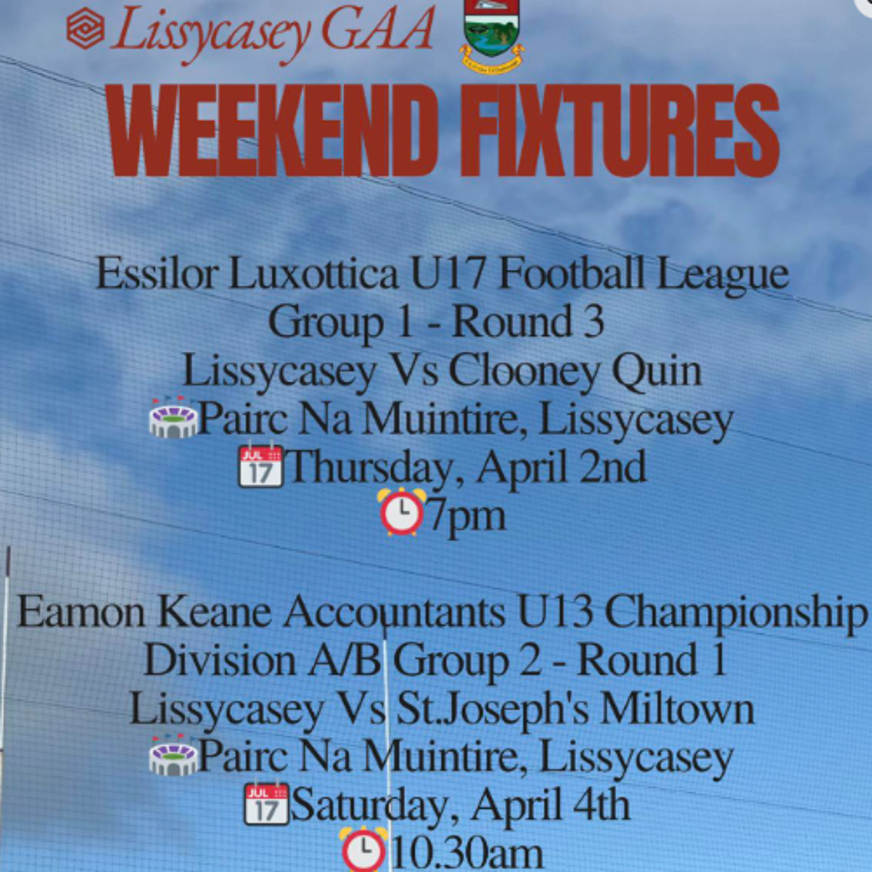Lissycasey GAA are hosting the official lighting ceremony at Páirc na Muintire this Saturday, April 4th, marking an exciting new chapter for the club.