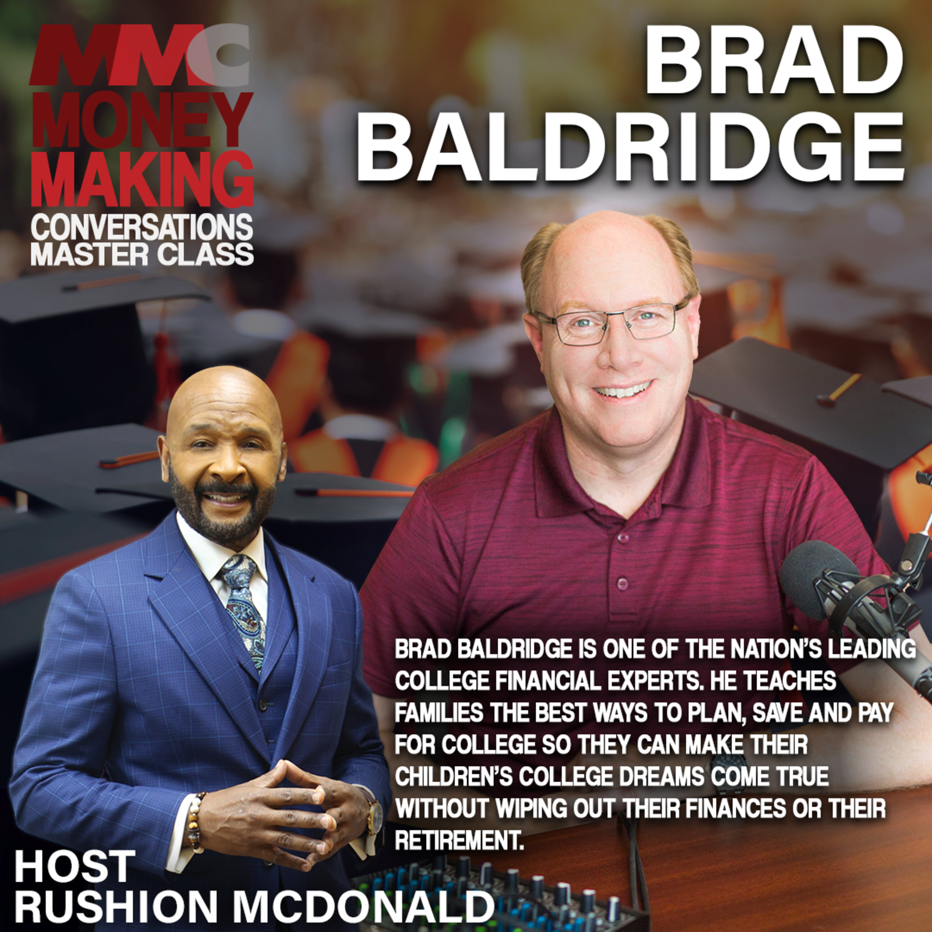 Two-time Emmy and Three-time NAACP Image Award-winning television Executive Producer Rushion McDonald interviews Brad Baldridge; over the past ten years, Brad has helped hundreds of families plan and pay for college. He has provided in-depth college plans resulting in increased financial aid, scholarships, identification of the right schools at the right price, and better loans. He is one of the nation's leading college financial experts. He teaches families the best ways to plan, save, and pay for college to make their children's college dreams come true without wiping out their finances or retirement.
