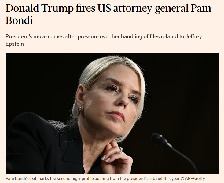 Pam Bondi has been firedand Les Wexner is being sued over Epstein.