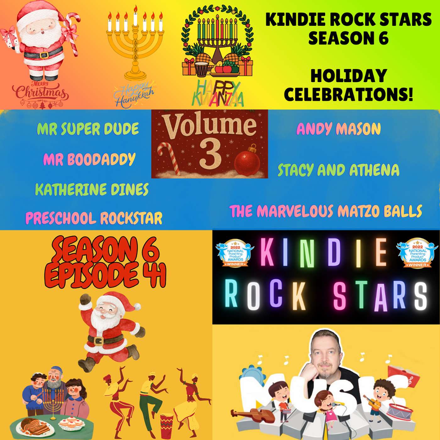 Kindie Rock Stars celebrates the holiday season with Volume 3 of Christmas, Hanukkah, Kwanzaa and Seasonal songs from some of the best family entertainers around. Enjoy holiday songs by: