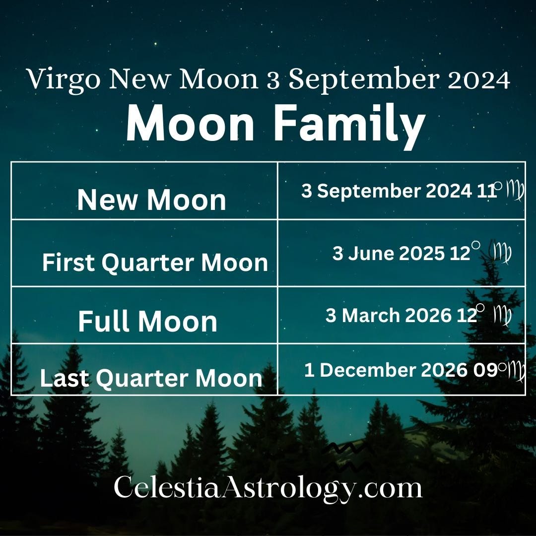 For this New Moon in Virgo, the Moon Family begins a new chapter. The key dates for this cycle are: