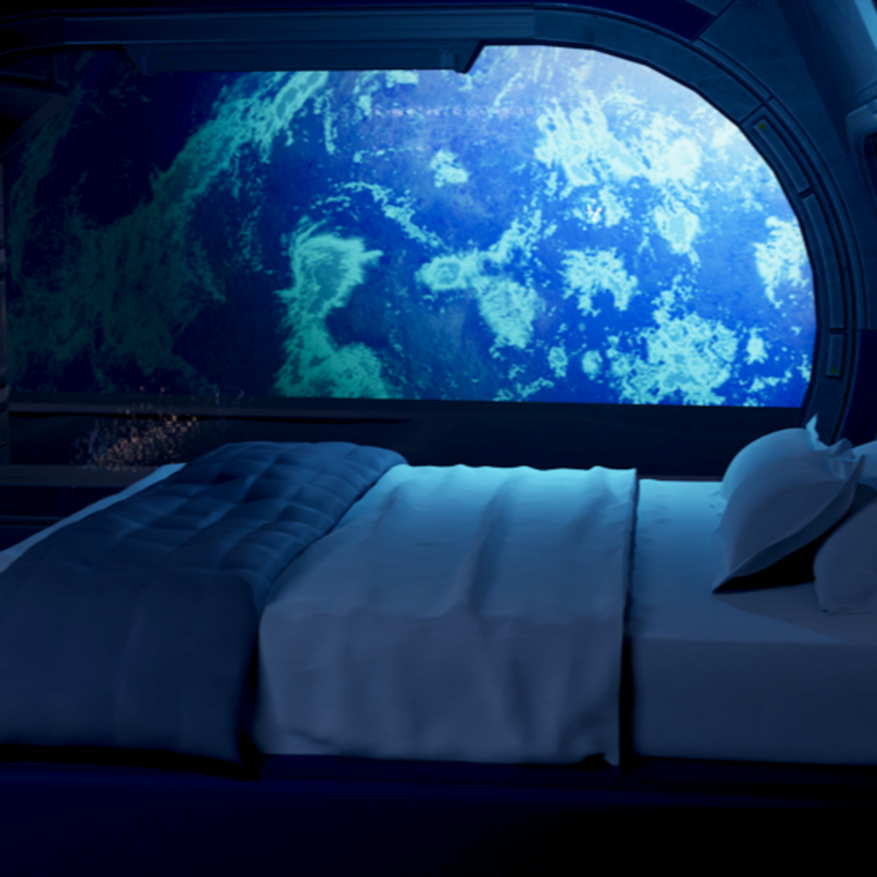 Fall asleep to 10 hours of relaxing white noise from the comfort of your private space loft as you float in orbit around a beautiful blue planet.