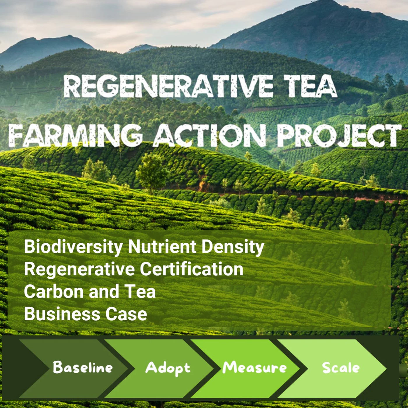 The Regenerative Tea Farming Action Project collaborates with smallholder tea farmers and cooperatives to promote the adoption and commercial benefits of regenerative organic farming. The project has advanced from strategic planning to field-level implementation, targeting in-depth agronomic and ecological innovation through four “deep dives” that address soil health and ecosystem resilience, biodiversity, nutrient density, regenerative certification, and carbon and tea.