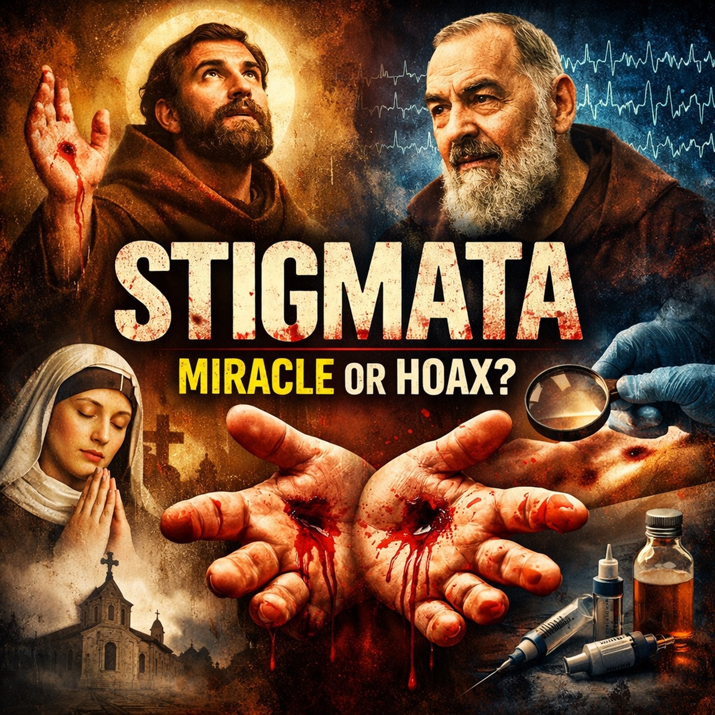 In this episode, we dive into the dark and fascinating mystery of stigmata — the unexplained wounds said to mirror the suffering of Christ. From St. Francis of Assisi and Catherine of Siena to Therese Neumann and Padre Pio, we explore the most famous cases, the recorded evidence, the religious history behind them, and the theories that try to explain why this happens.
