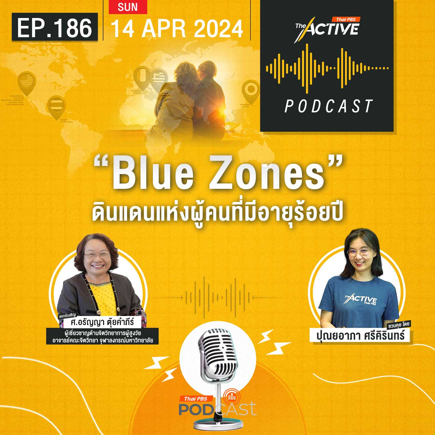 The Active ชวนมาสำรวจไปพร้อม ๆ กันกับ ศาสตราจารย์ ดร.อรัญญา ตุ้ยคำภีร์ ผู้เชี่ยวชาญด้านจิตวิทยาการผู้สูงวัย อาจารย์คณะจิตวิทยา จุฬาลงกรณ์มหาวิทยาลัย ใน The Active Podcast EP.186 | “Blue Zones” ดินแดนแห่งผู้คนที่มีอายุร้อยปี