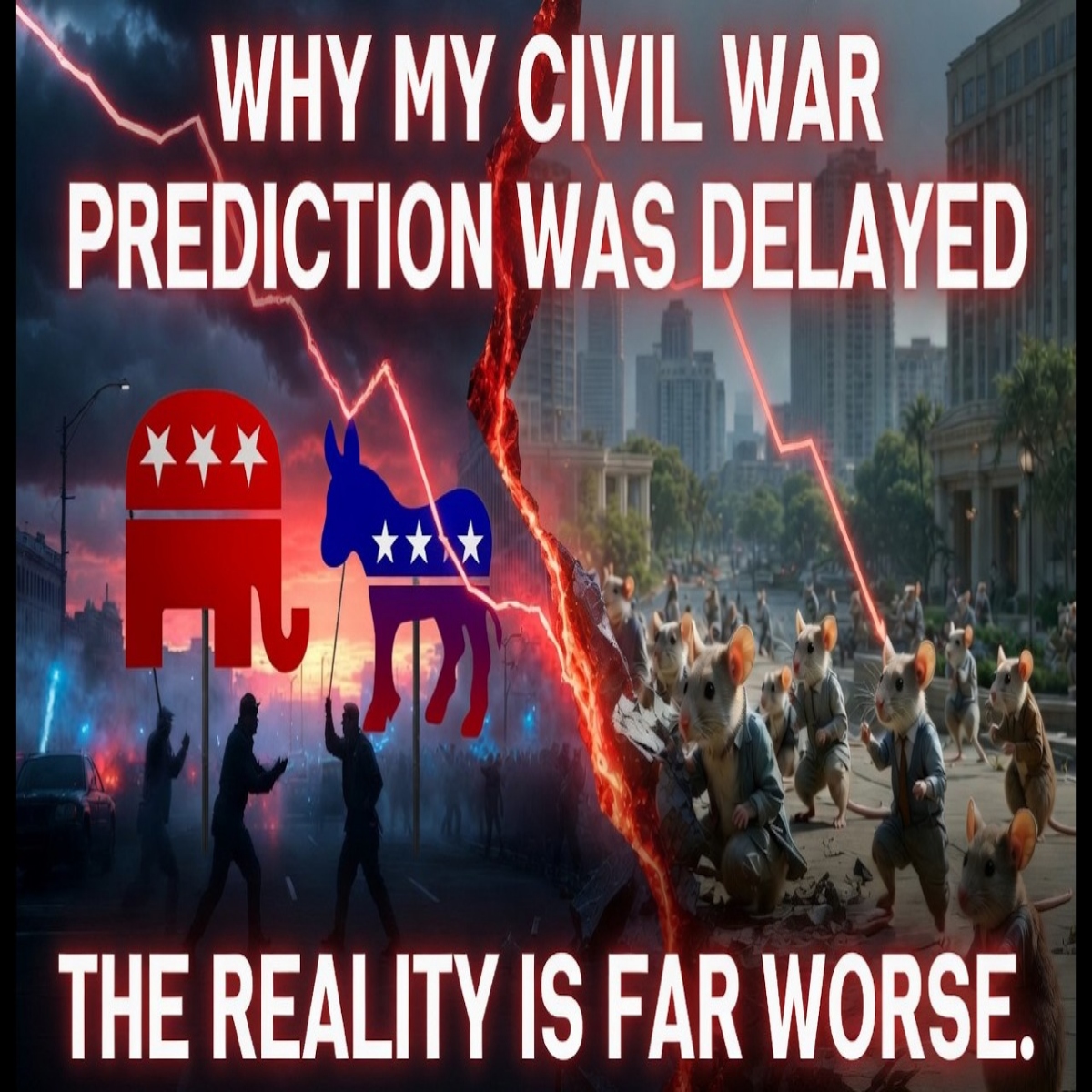 My civil war prediction was RIGHT—both sides now openly discuss violence, leftists advocate murdering opponents, and every historic indicator points to collapse. But we haven't erupted because something VASTLY WORSE is happening: Mouse Utopia. Screen addiction, complete authority failure, and total societal atomization mean people are too drugged and disconnected to organize conflict. We've entered the behavioral sink's final phase—right before mass violence begins. The missing variable makes everything infinitely more terrifying.