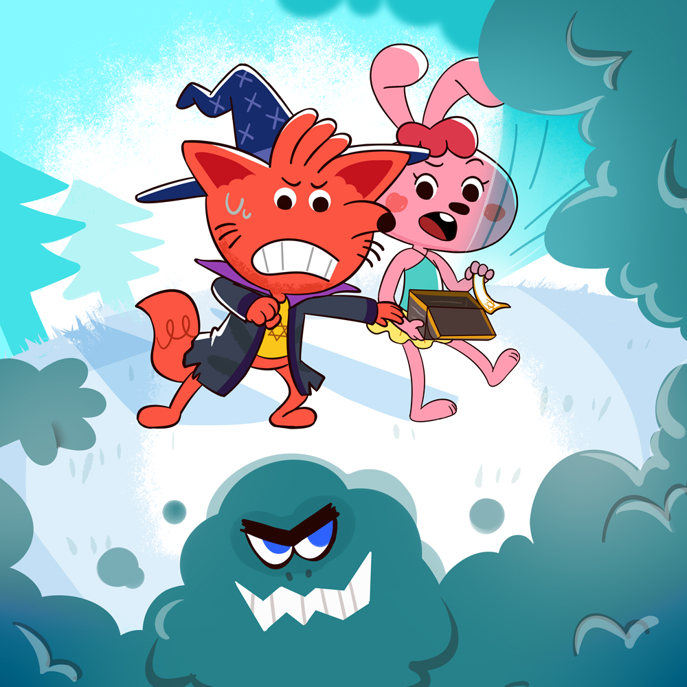 クルルたちが雪山に辿り着きました。 そこには、大魔王スモッグの部下、黒い雪だるまに出会いました。 黒い雪だるまは巨大なハンマーを振りかぶり、ココリとクルルに向かって振り下ろしました…