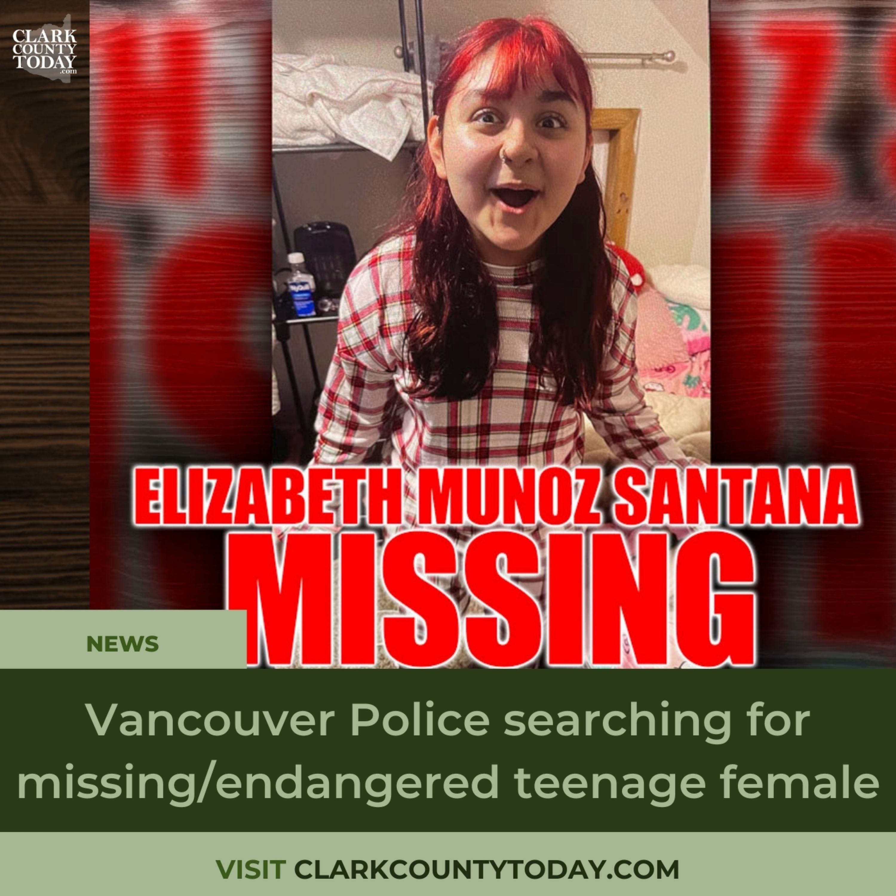 Vancouver Police are searching for 14-year-old Elizabeth Munoz Santana, a missing endangered teen last seen near Washington Elementary. Learn more about her description and how you can help. Read the full story at https://www.clarkcountytoday.com/news/vancouver-police-searching-for-missing-endangered-teenage-female www.ClarkCountyToday.com #VancouverPolice #MissingTeen #EndangeredTeen #ElizabethMunozSantana #Vancouver #ClarkCountyWa #WashingtonState #LocalNews