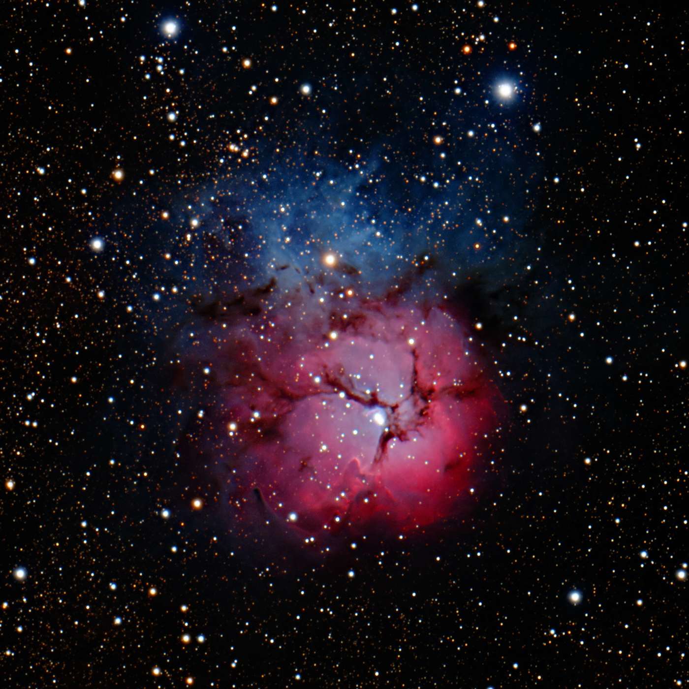 Vandaag eens geen lezing uit arxiv.org of Wikipedia, maar een pleidooi voor de verwondering. Als vehikel voor de verwondering gebruiken we in deze aflevering de wonderschone Trifid nevel of M20. Maar u kunt natuurlijk iets pakken wat meer bij u past, zoals een afbeelding van Anna Kournikova, uw laatste aanwinst op het gebied van glazen vensterbank-beestjes of een catalogus van BMW.