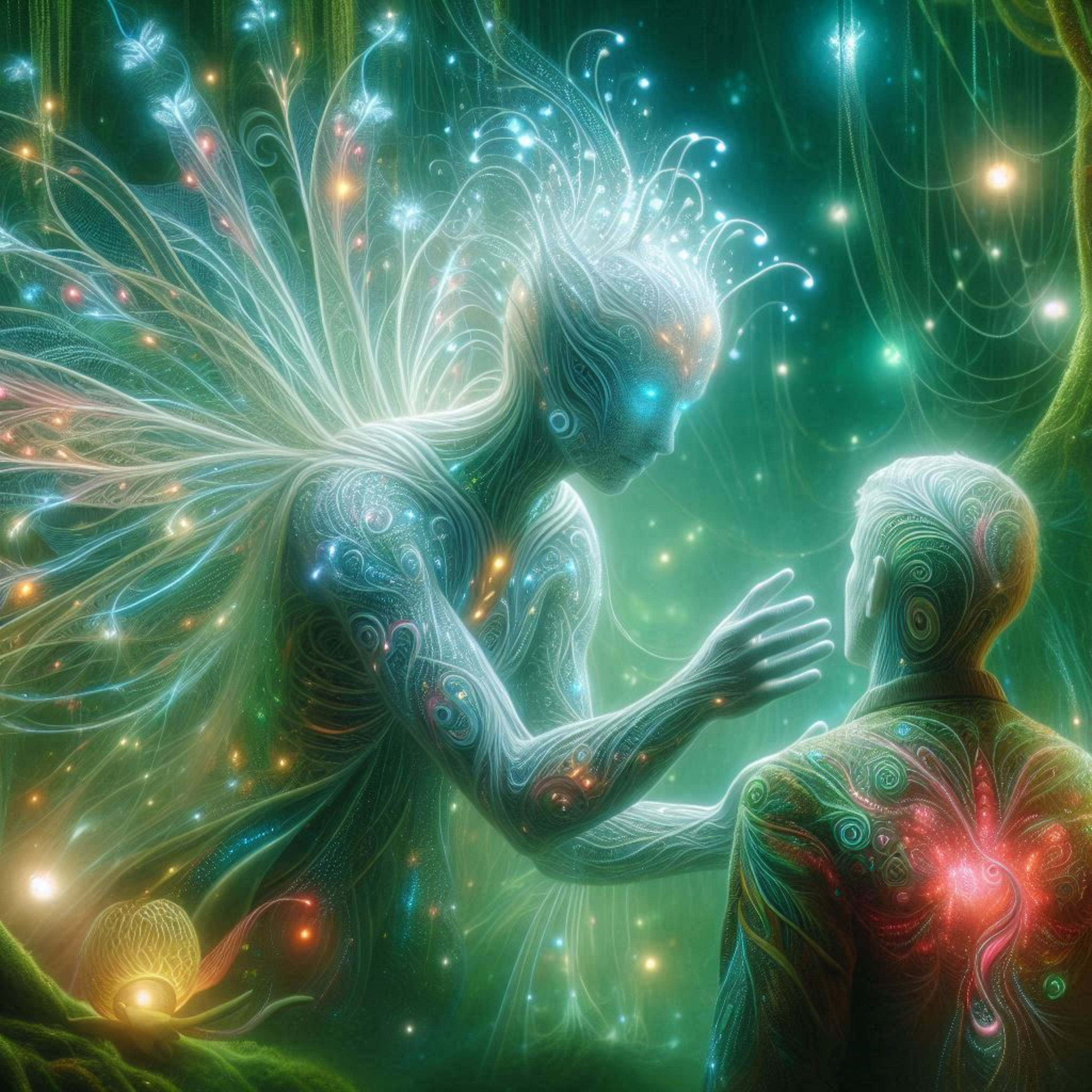 Grant and his co-author and assistant Desta Barnabe discussed their experiences with psychedelics, particularly psilocybin and DMT. Grant shared his high-dose psilocybin experiences, which he used as a form of education to learn lessons about compassion and gratitude. They explored the phenomenon of encountering beings during DMT experiences, with Desta noting the intriguing concept of "machine elves" and the similarity of reported alien abductions to actual abduction experiences. The conversation raised questions about the nature of these experiences, whether the beings are real or reflections of the user's mind, and the potential lessons or messages they convey.