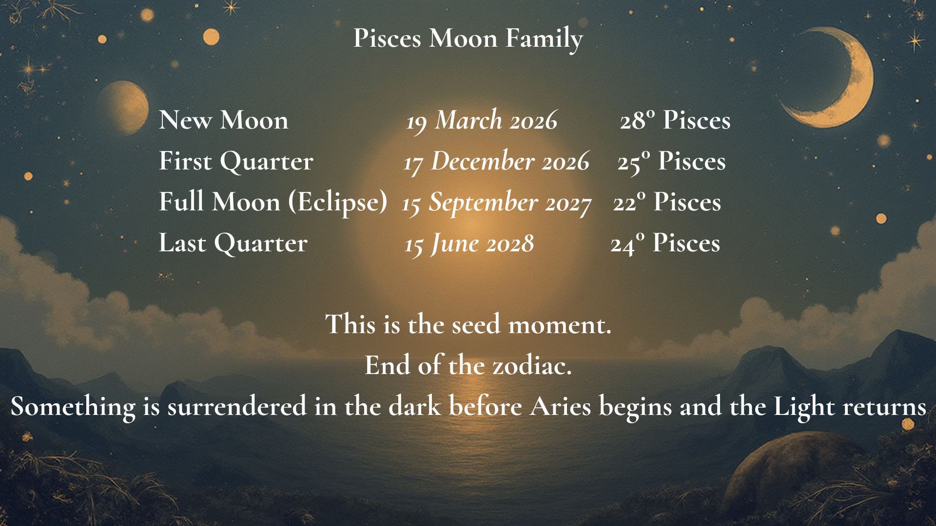 * New Moon 19 March 2026 28° Pisces The seed is planted