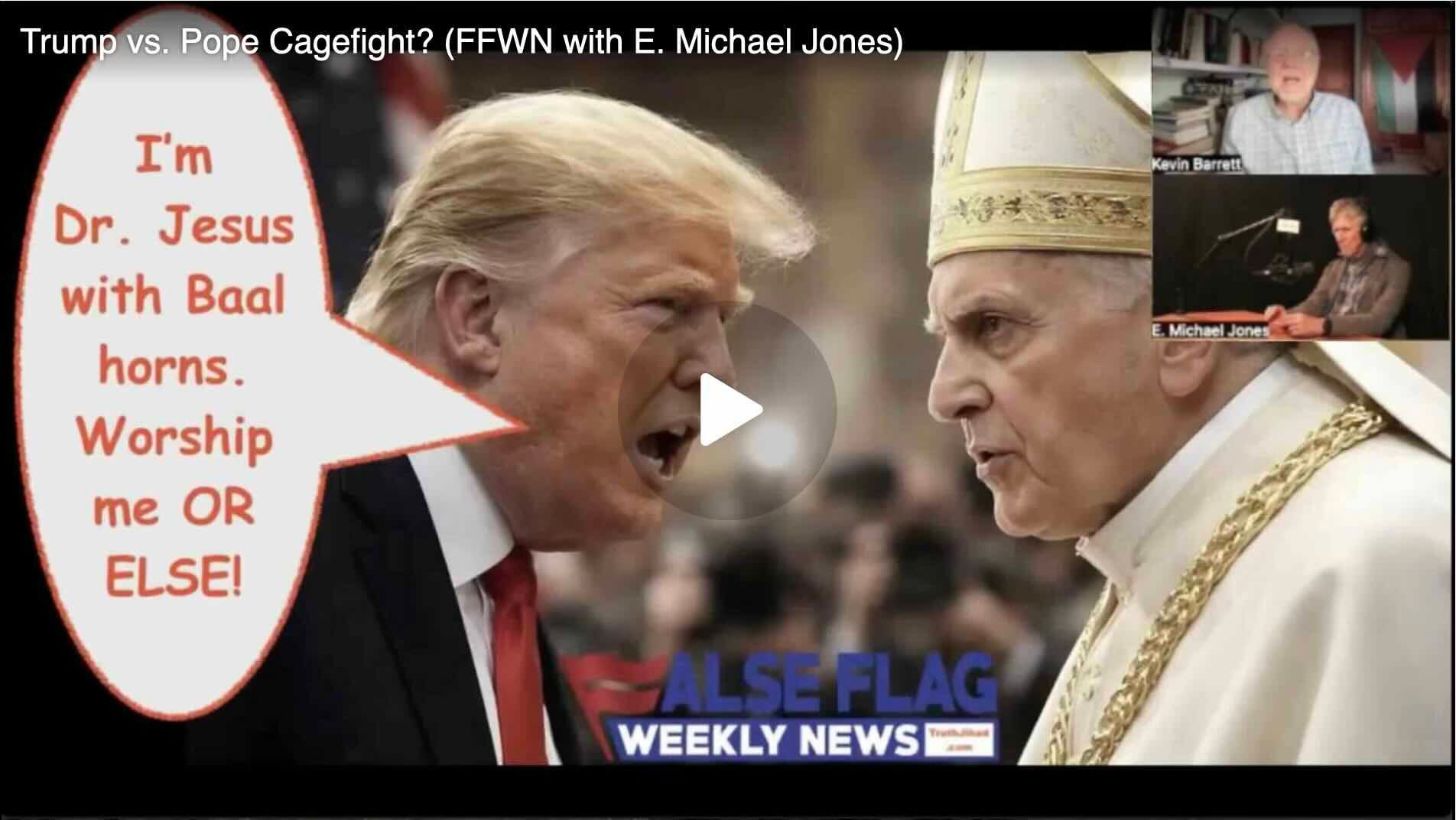 Kevin Barrett: Okay, we’re back after some technical difficulties here at False Flag Weekly News, doing the Trump versus the Pope section with Dr. E. Michael Jones. So, Mike, you were just talking about the poor political judgment shown by the White House.