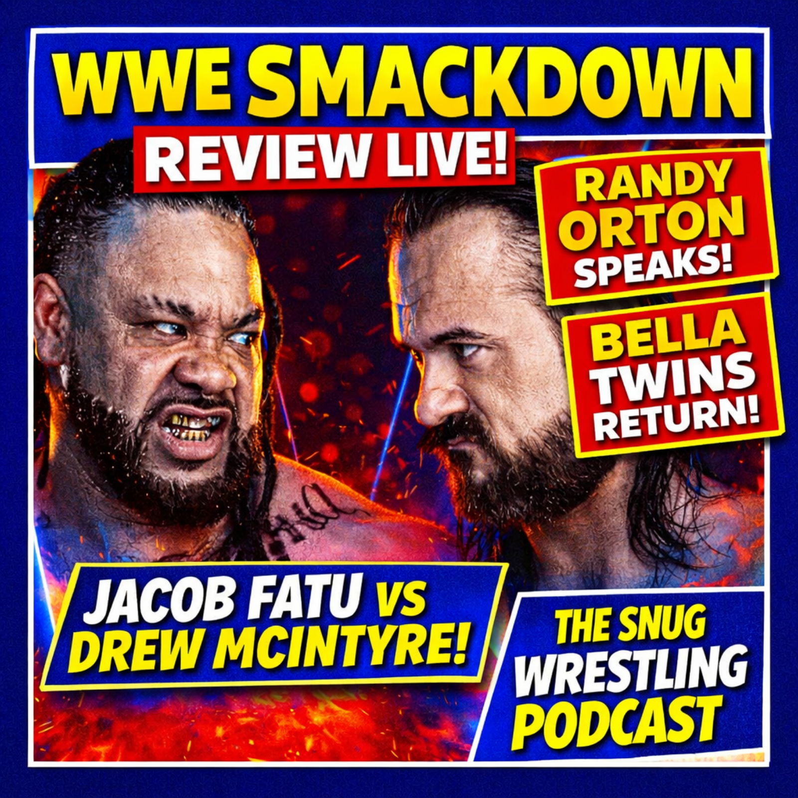 The Snug Crew goes LIVE to break down everything from this week’s WWE Friday Night SmackDown. We’re reviewing Randy Orton addressing his shocking assault on Cody Rhodes, Jacob Fatu vs. Drew McIntyre, Solo Sikoa & Tama Tonga defending the WWE Tag Team Championship against Damian Priest & R-Truth, Nia Jax & Lash Legend defending the WWE Women’s Tag Team Championship against The Bella Twins, Motor City Machine Guns vs. Fraxiom, and Kit Wilson calling out Jelly Roll.